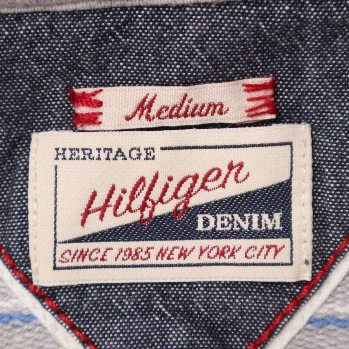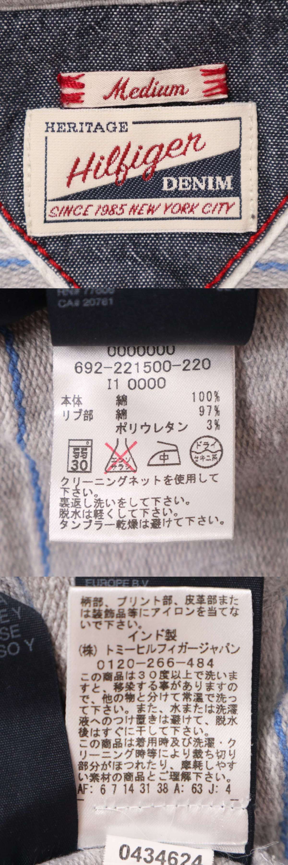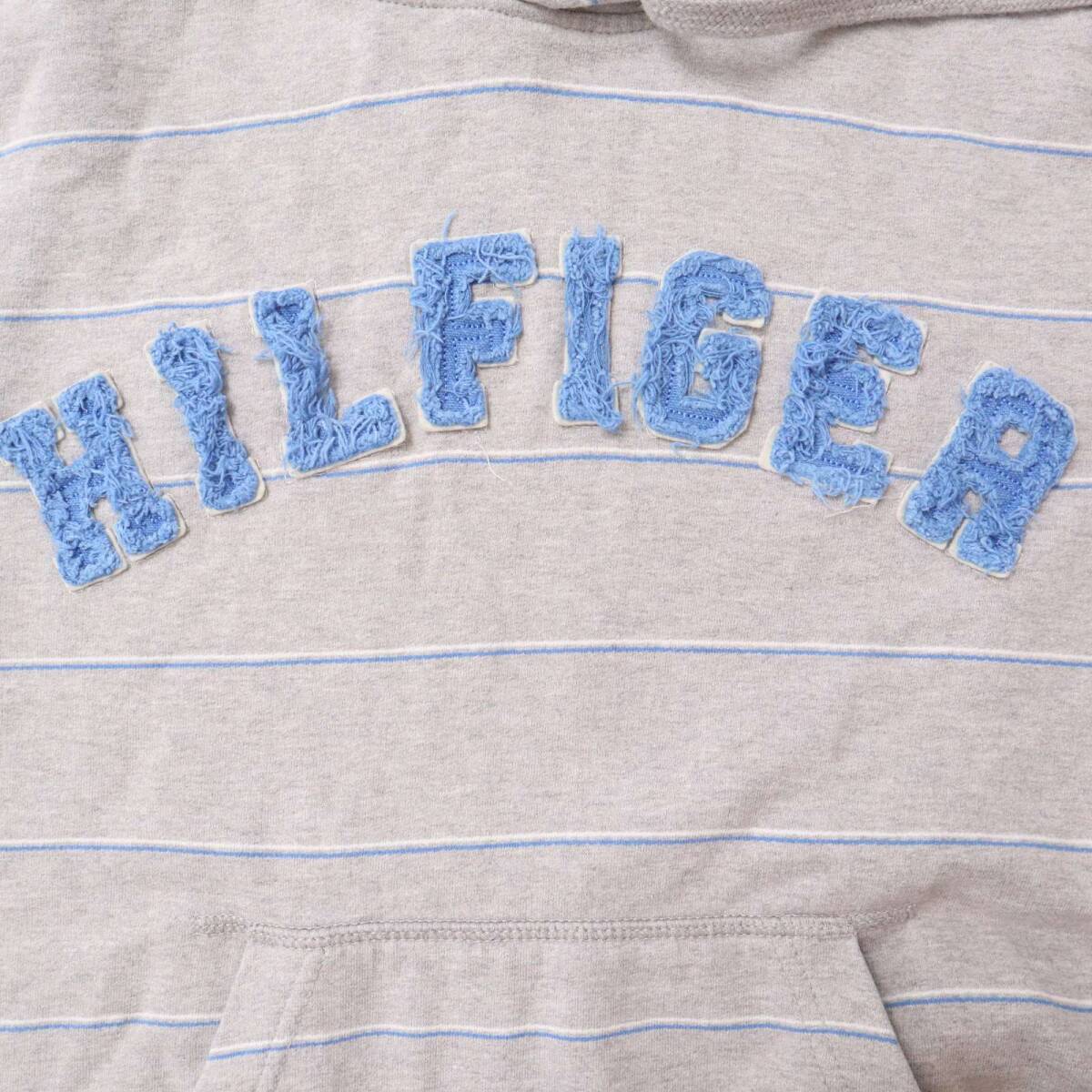 HILFIGER DENIM トミーヒルフィガー 通年 ロゴワッペン★ スウェット ボーダー プルオーバー パーカー Sz.M メンズ グレー
