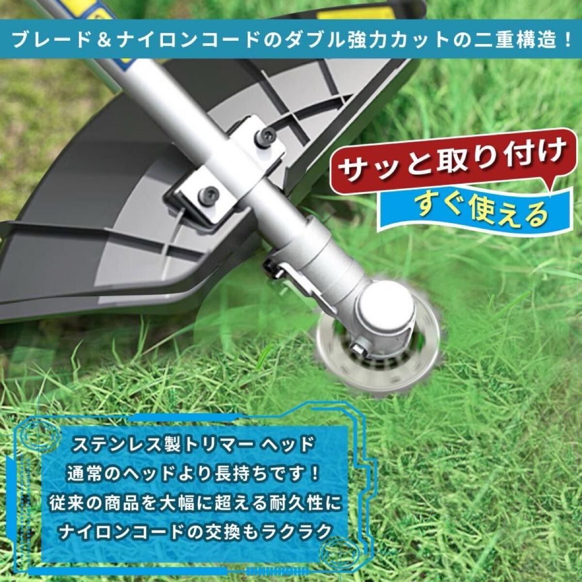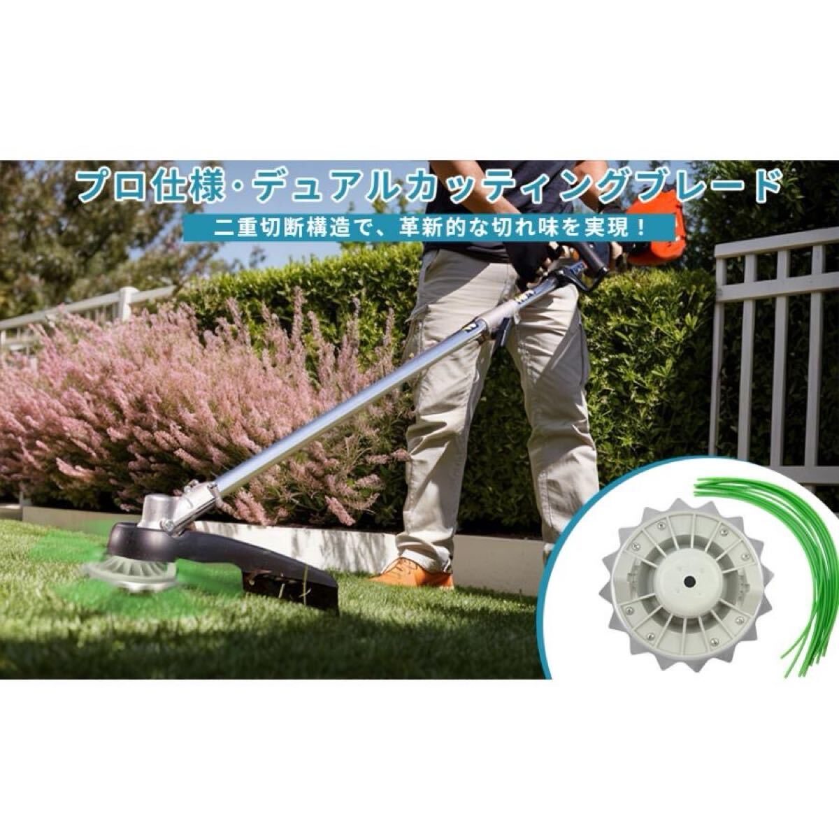 【二重構造で幅広く対応】 ステンレス刃とナイロンコードの二重切断構造を採用しており、刈払機用ツールとして最適。家庭の庭、畑、ガーデンなどさまざまなシーンに対応し、芝刈りやエッジ処理はもちろん、雑草・低木・小石など硬い対象物も強力にカットし、除草効果を高めます。