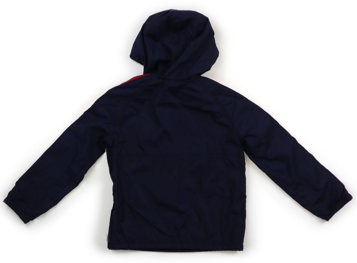 ウィンドブレーカー。ポリエステル地。カットソー生地の裏地がついています。フードは縫い付けです。左脇にファスナーあり。所々に少しばかり黒ずみや白いスレ汚れがありますが、ぱっと見は目立ちません。お手入れ次第でまだお使い頂けそうです。