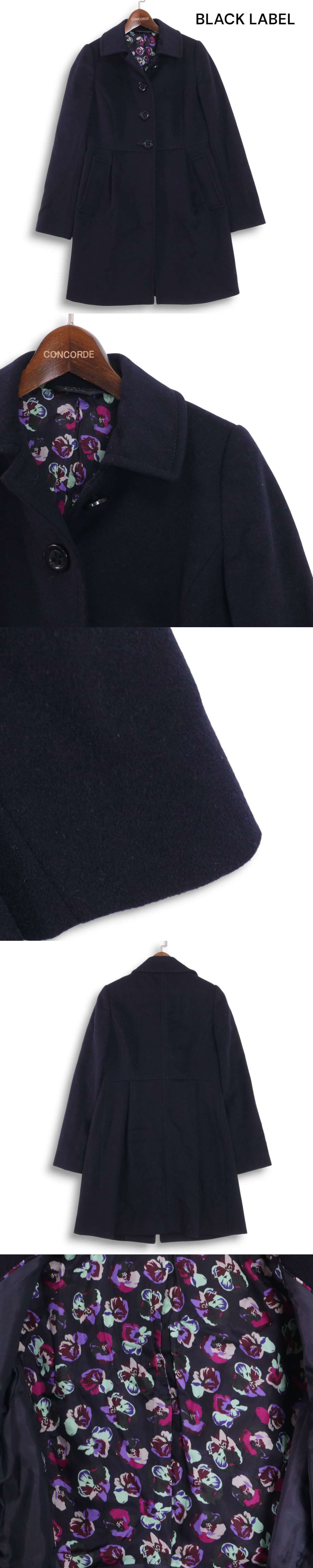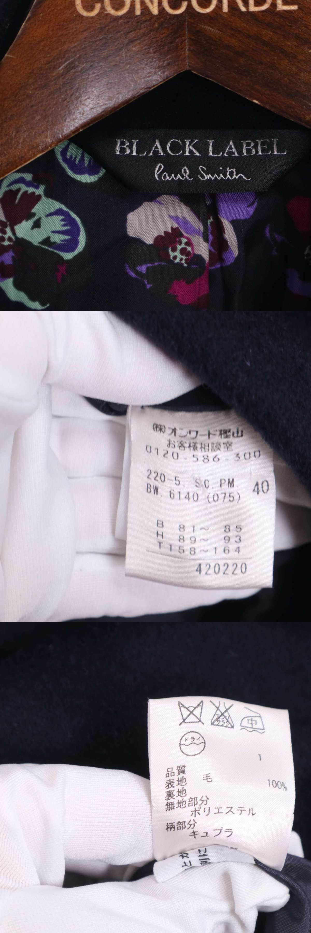 Paul Smith BLACK LABEL ポールスミス 秋冬★ 裏地花柄 メルトン ウール ステンカラー コート Sz.40 レディース ネイビー