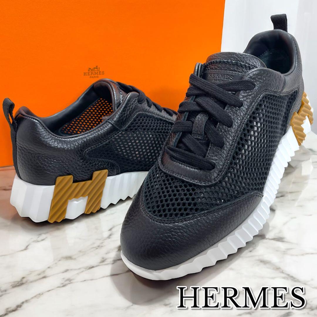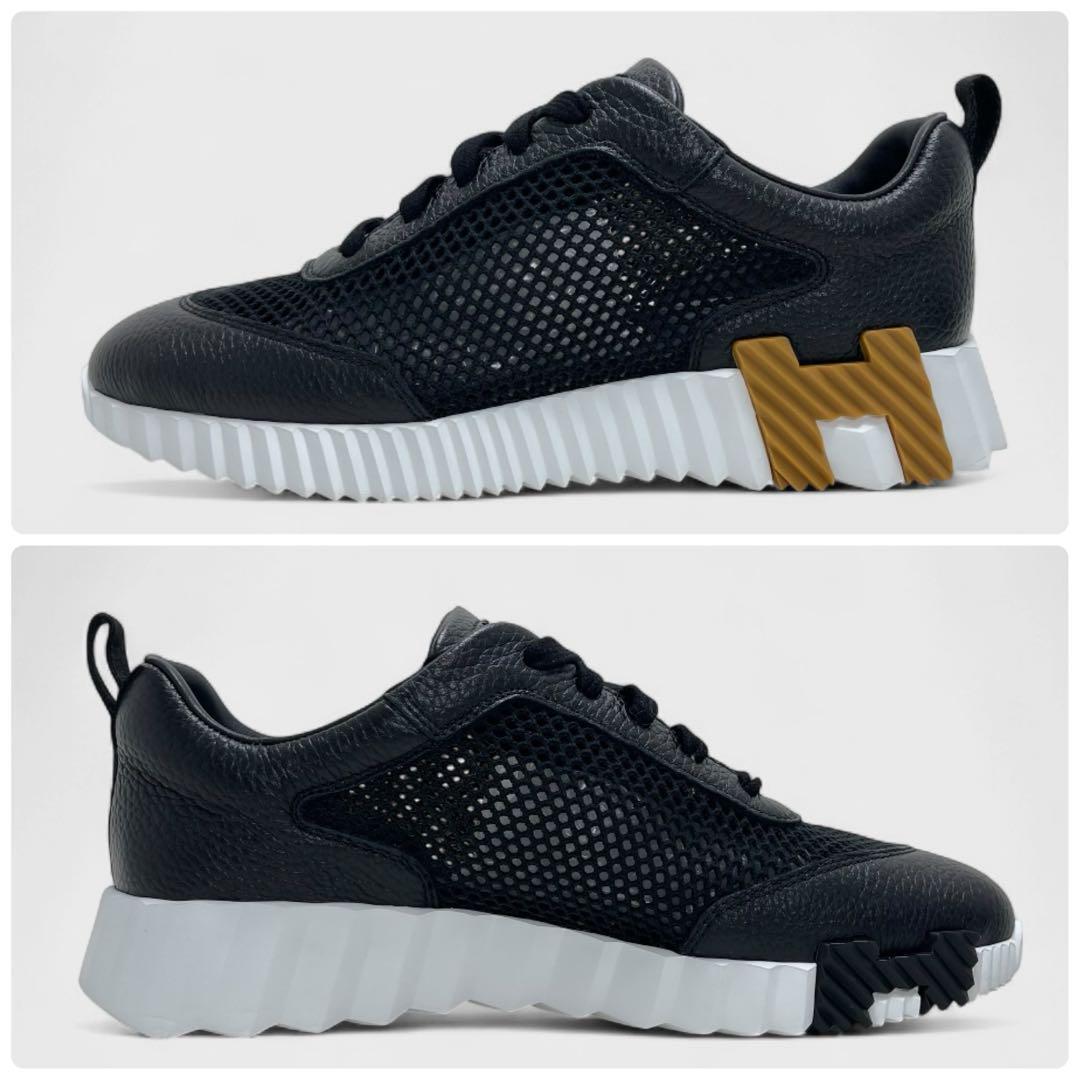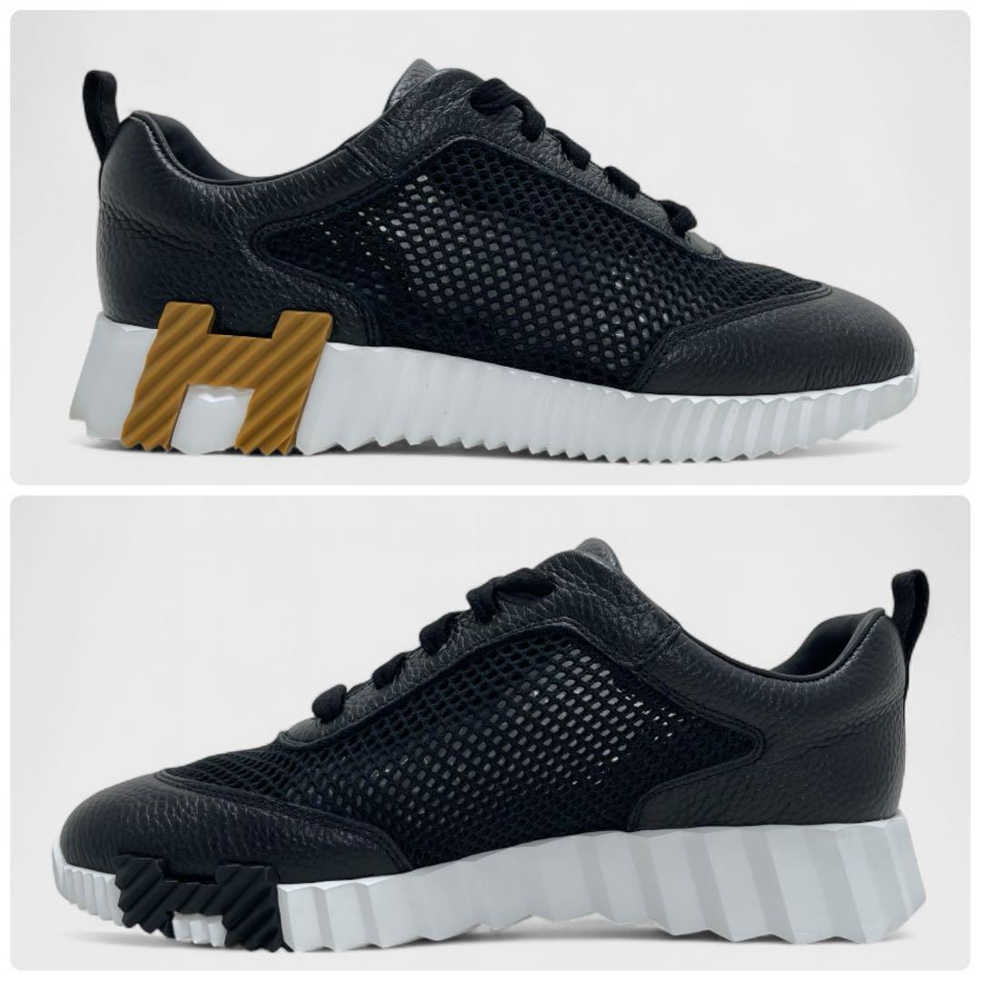 【現行品/付属品有り】HERMES エルメス バウンシング スニーカー サイズ38 カーフレザー 本革 メッシュ 黒 Hロゴ イタリア製 レディース 靴 | |||