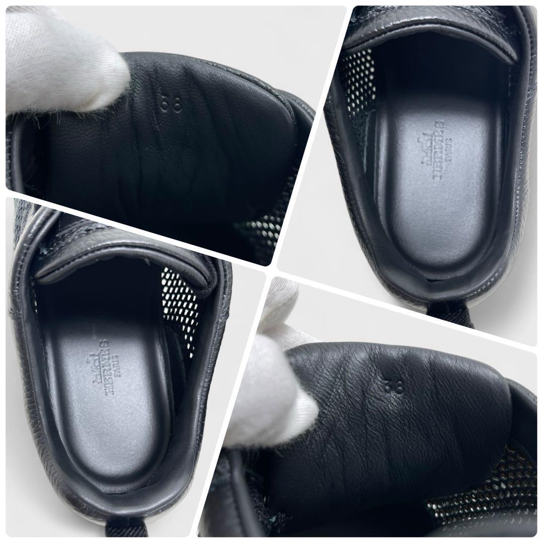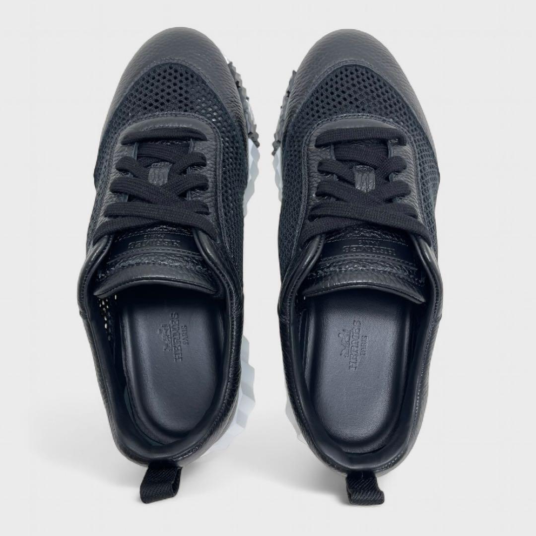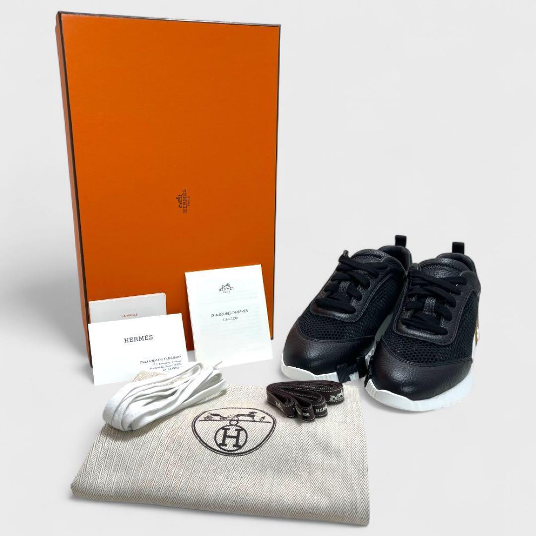 【現行品/付属品有り】HERMES エルメス バウンシング スニーカー サイズ38 カーフレザー 本革 メッシュ 黒 Hロゴ イタリア製 レディース 靴 | |||