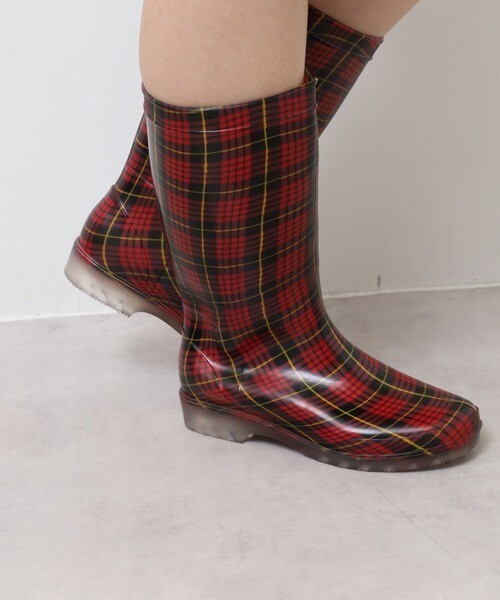 アウトレット レディース レインブーツ Lサイズ 23.5-24.0cm RED/CHK (レッドチェック) ロングブーツ 長靴 雨靴 af_15032 ②