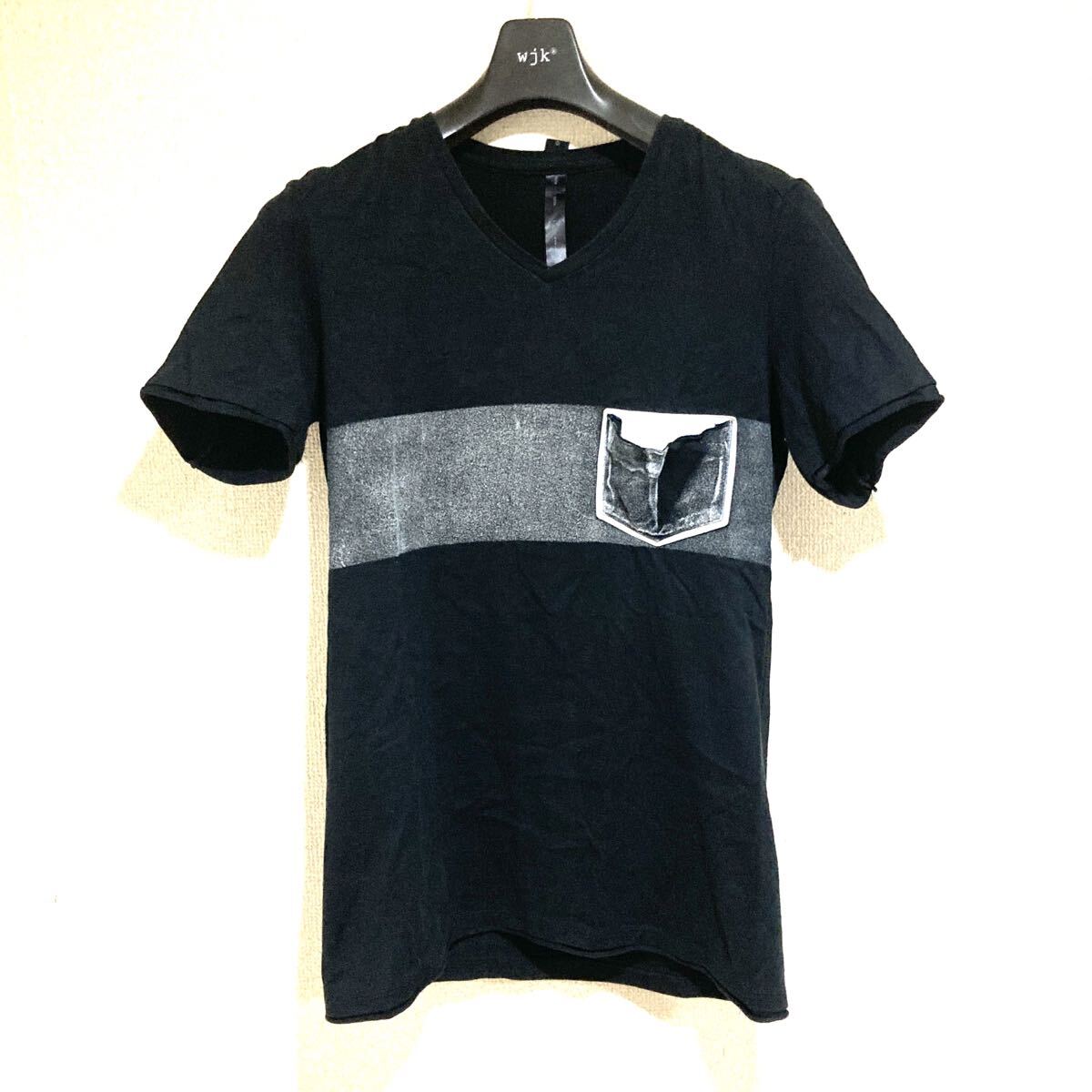 度の詰まった目面の良い天竺生地を使用。ポケット部のレザーは主張し過ぎない程度にセット。・胸に特殊でオリジナルの手刷りプリントをすることで独自性を出し.あえて緩くしたポケットは表情に変化を付けてくれる。・裾.袖のwjk独自のカットオフ仕様により.粗野感を演出。 wjkらしくタイトなシルエットですので野暮ったくなりません。 1. 一口价