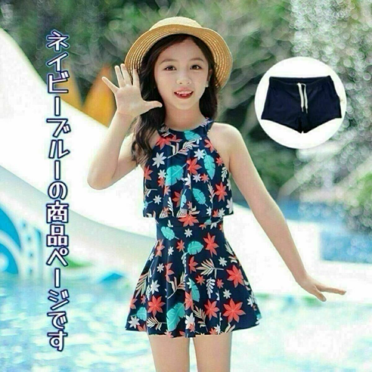 かわいい花柄のワンピース水着。上半身は2層構造になっていてカバー力抜群。人気のAラインヒラヒラスカートもおしゃれでかわいいワンピースの中はショートパンツ付き。トイレがスムーズで楽チンです。バックスタイルは紐がクロスになっていてかわいいです。(紐は調節不可ですがズレにくい仕様)ショートパンツのウエストはゴム仕様です。パンツの内部分からヒモが出ています。(1つの穴から2本紐が出ていますが蝶々結び可)柔らかい生地で通気性もあるので快適に長時間水遊びを楽しむ事ができます。