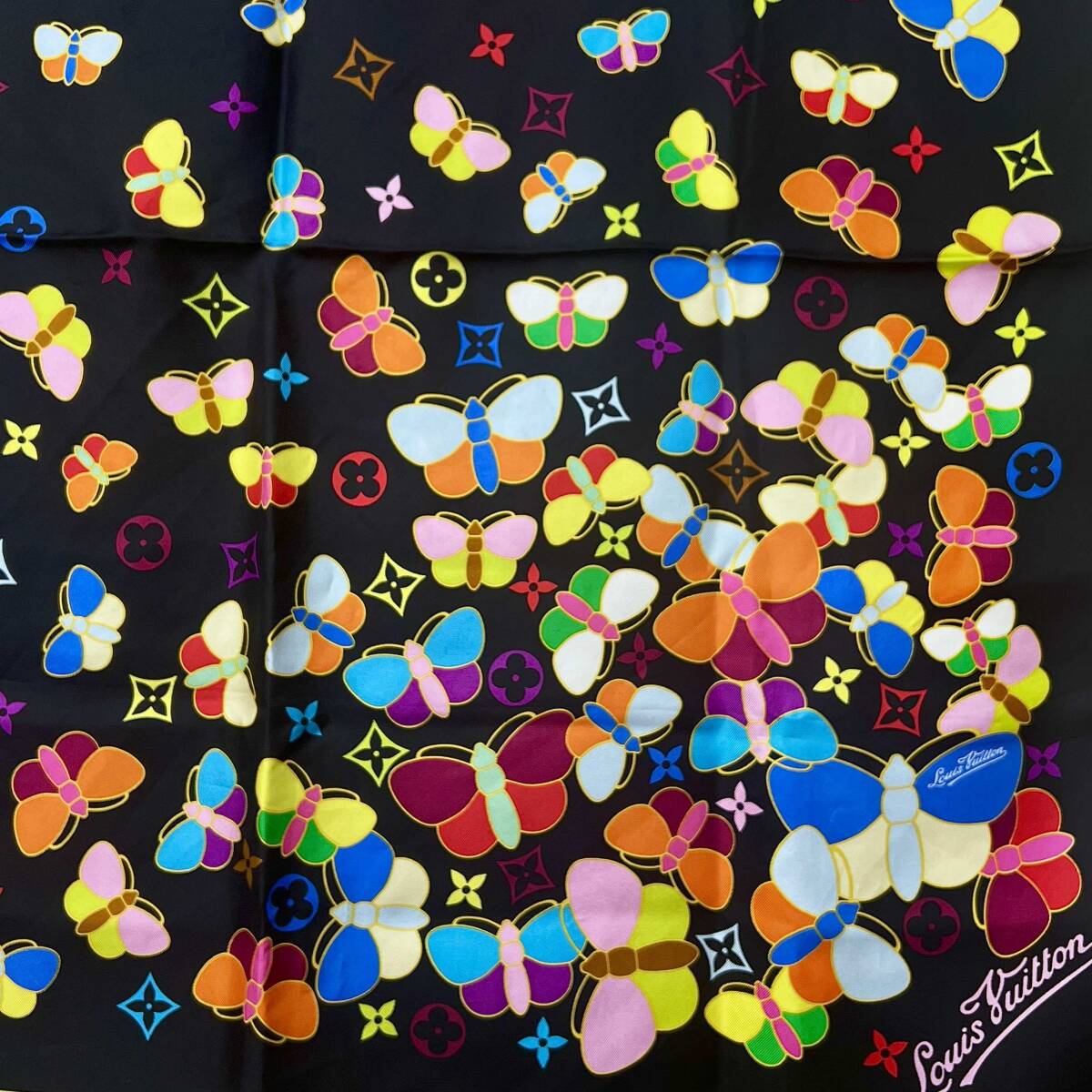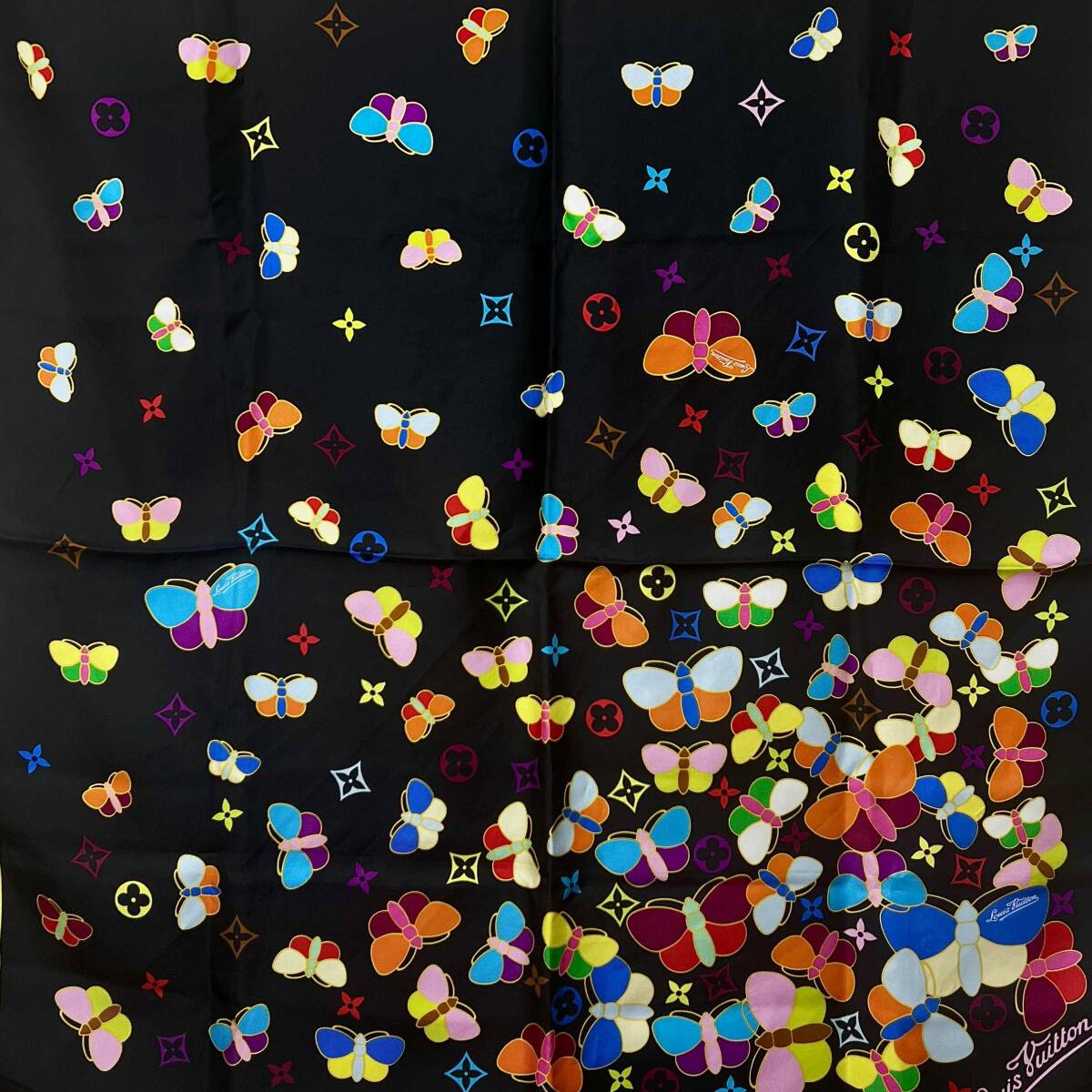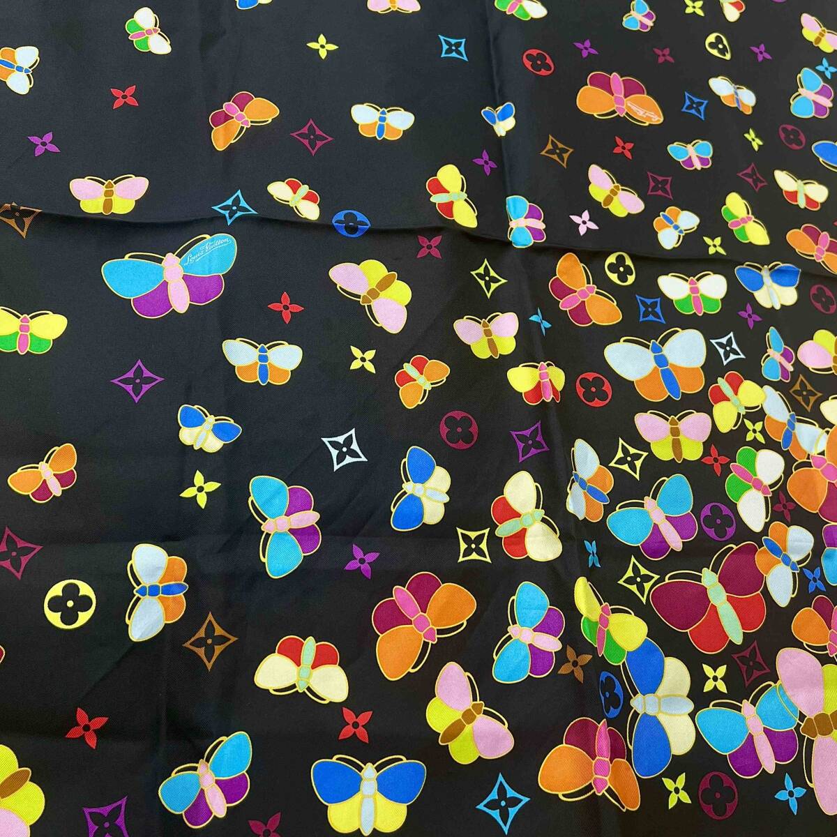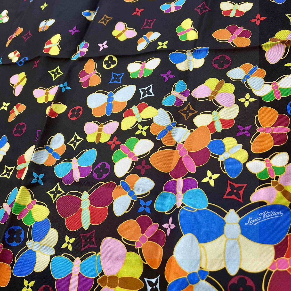商品名:モノグラム マルチカラー 蝶柄 シルク スカーフ