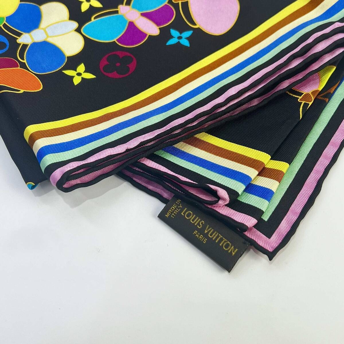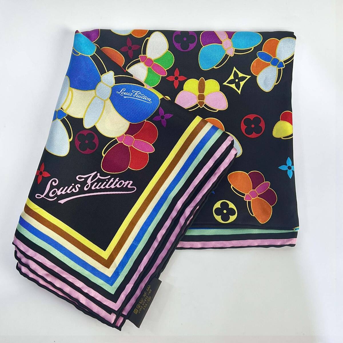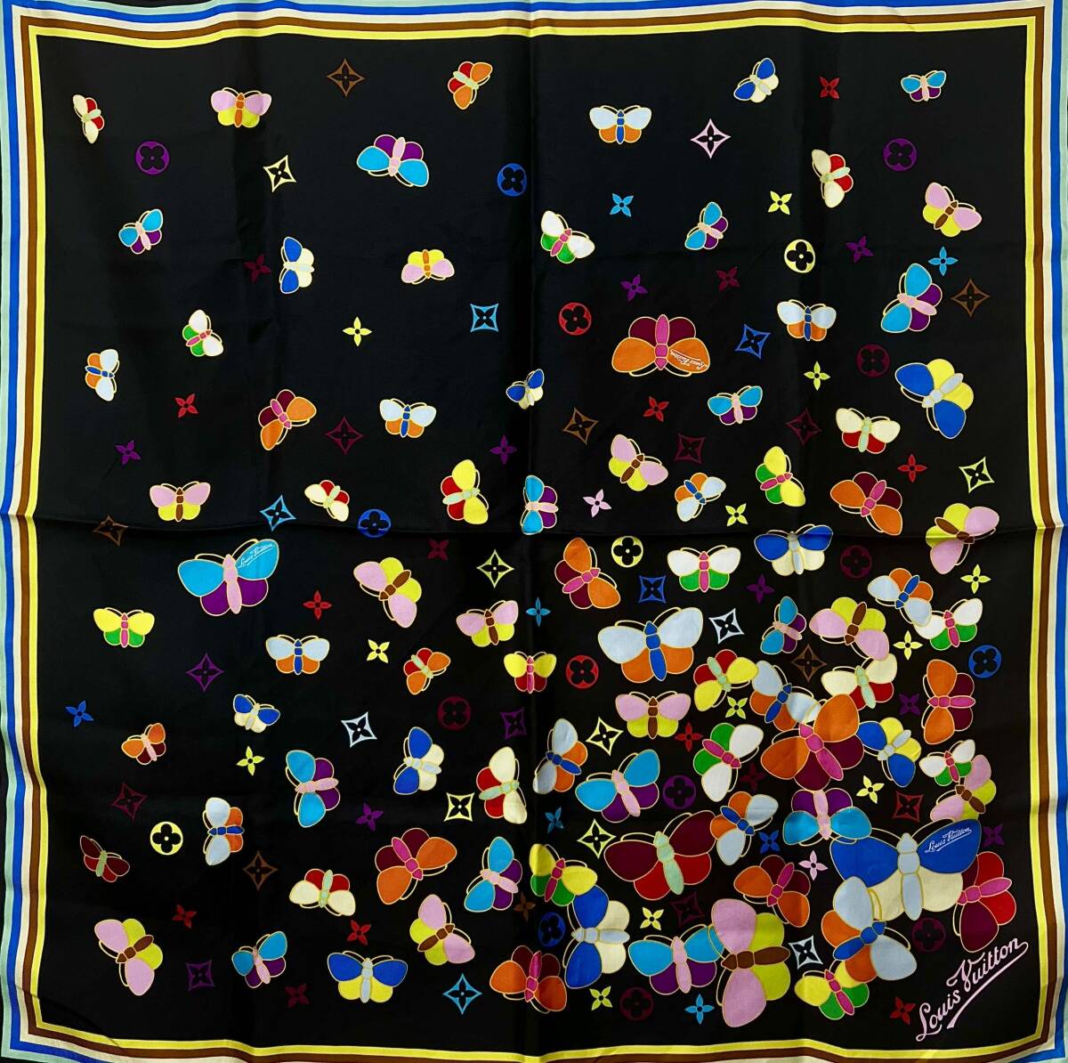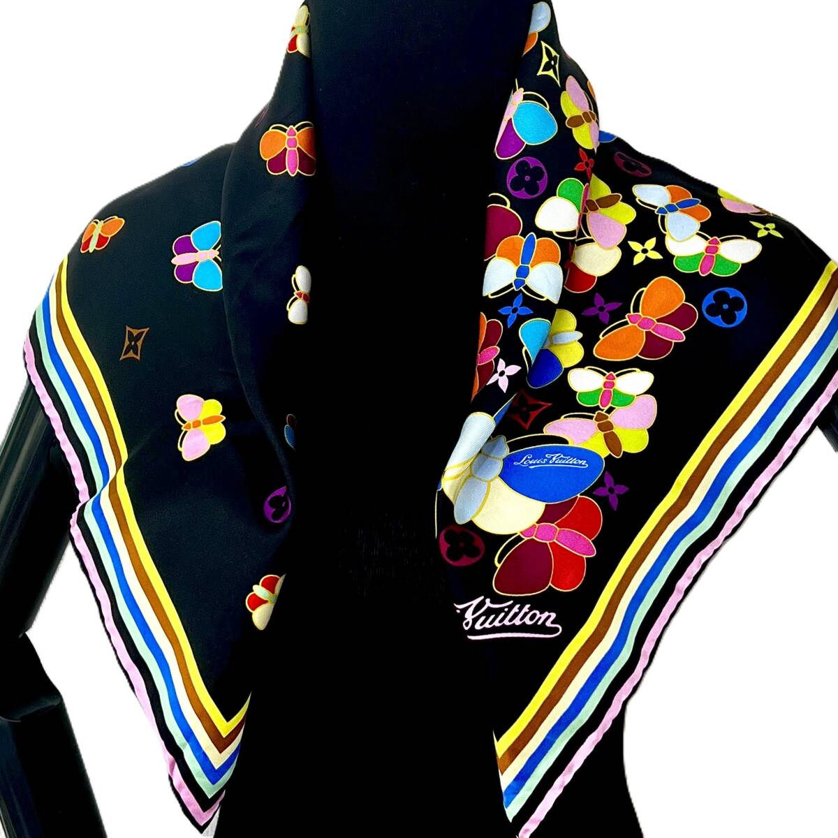 商品名:モノグラム マルチカラー 蝶柄 シルク スカーフ
