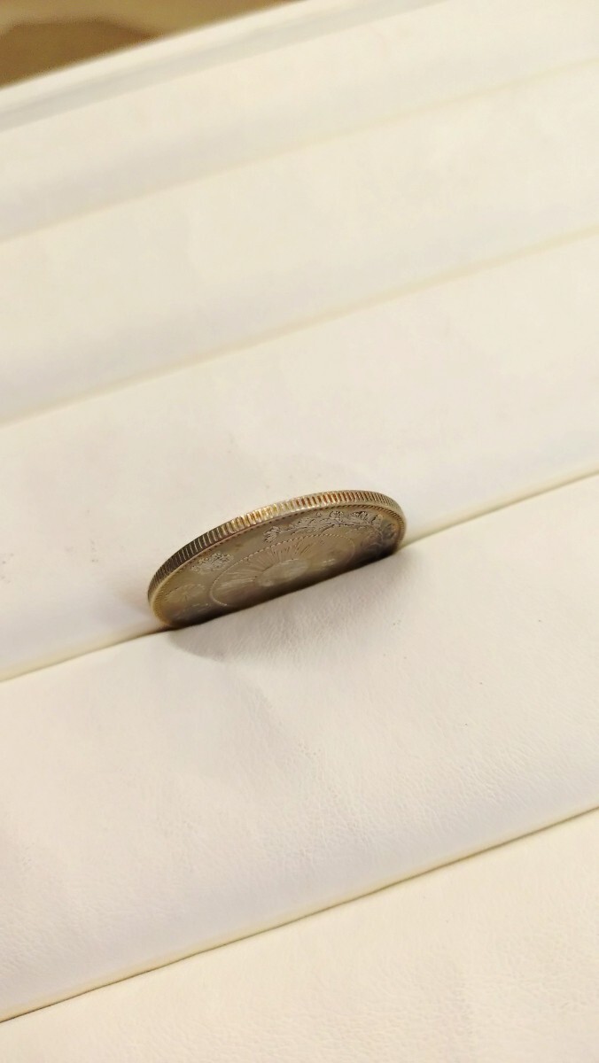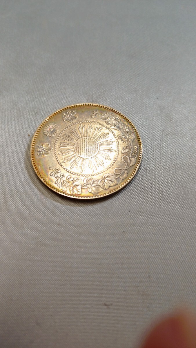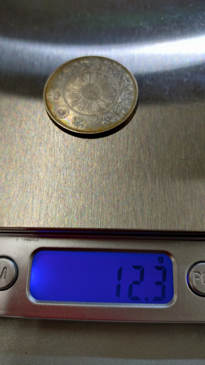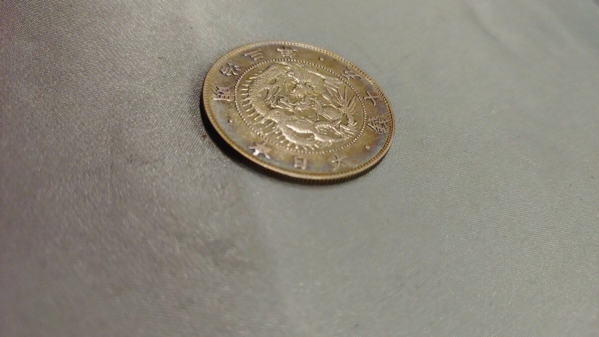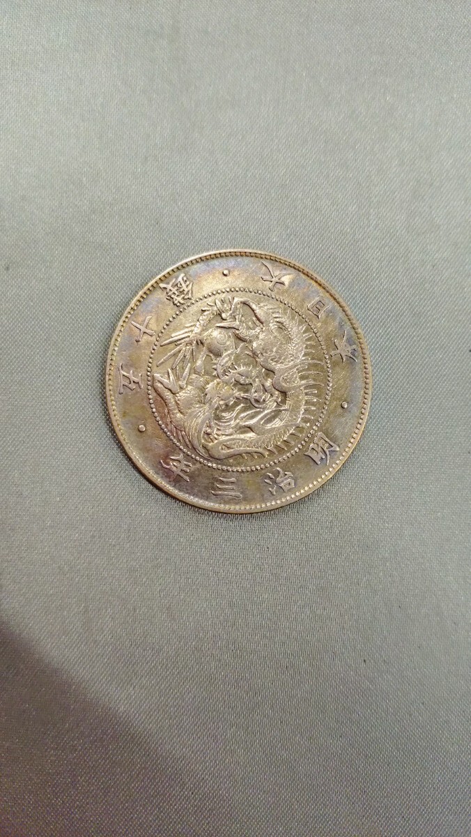 明治三年 50銭 銀貨 大日本 旭日竜大型 重さ:約12.3g 直径:約32.0mm