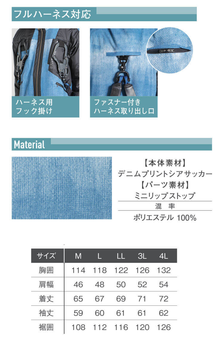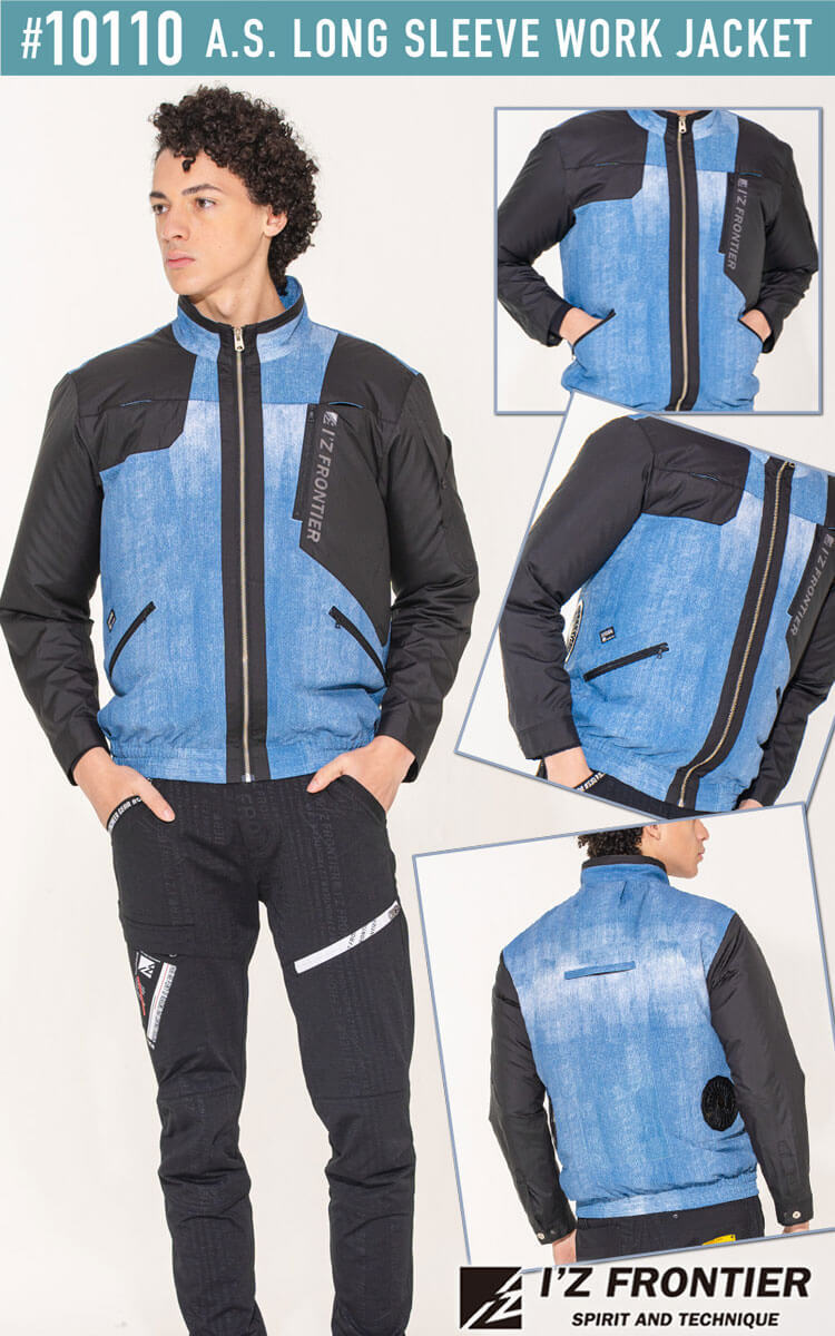 [在庫処分] 作業服 春夏 アイズフロンティア フルハーネス対応長袖ワークジャケット(服のみ) 10110 Mサイズ 90バーティカルブルー