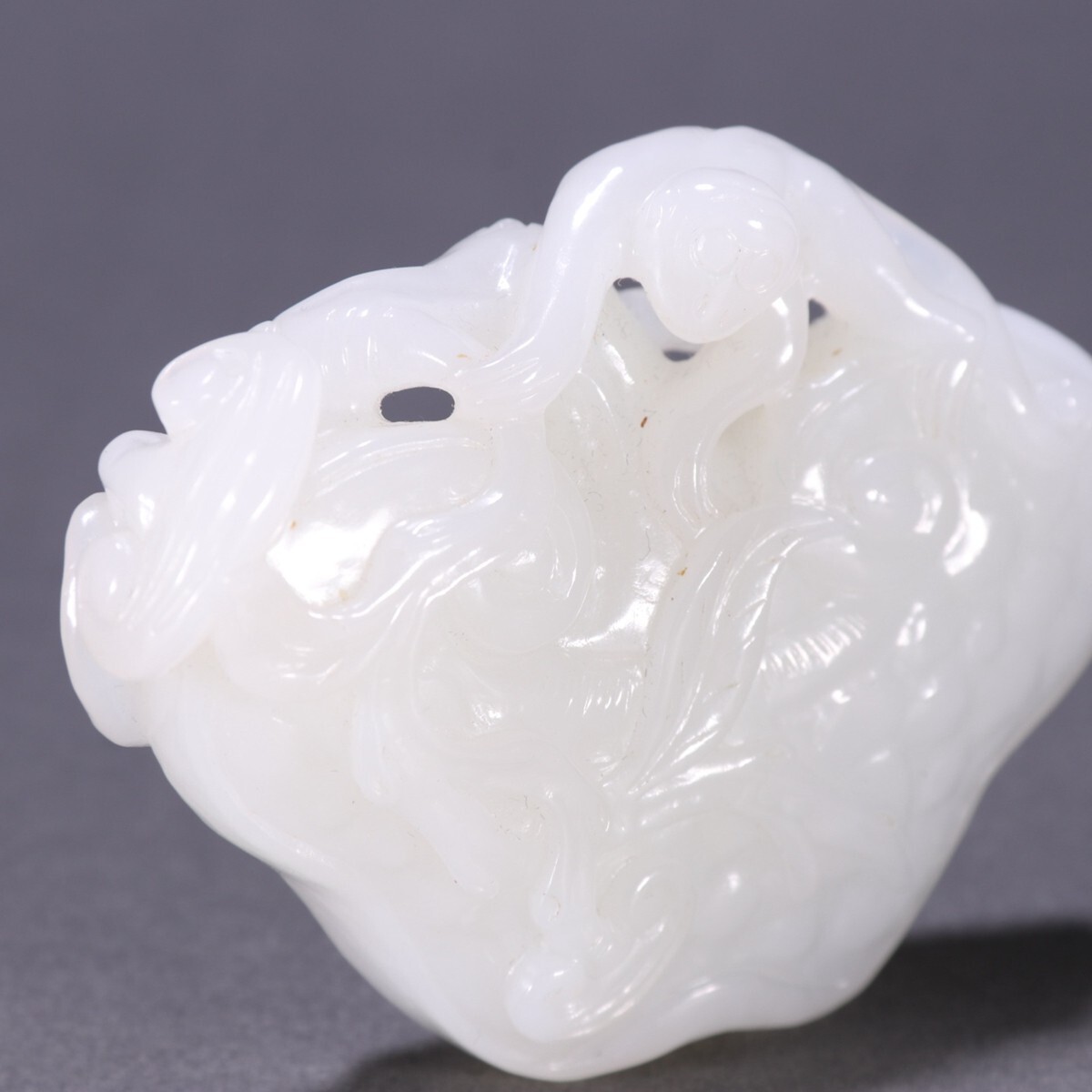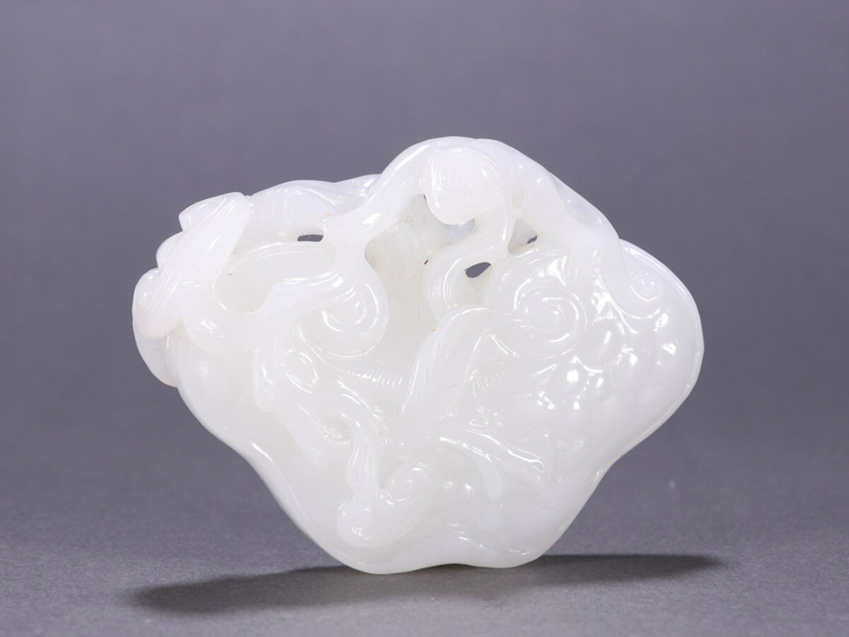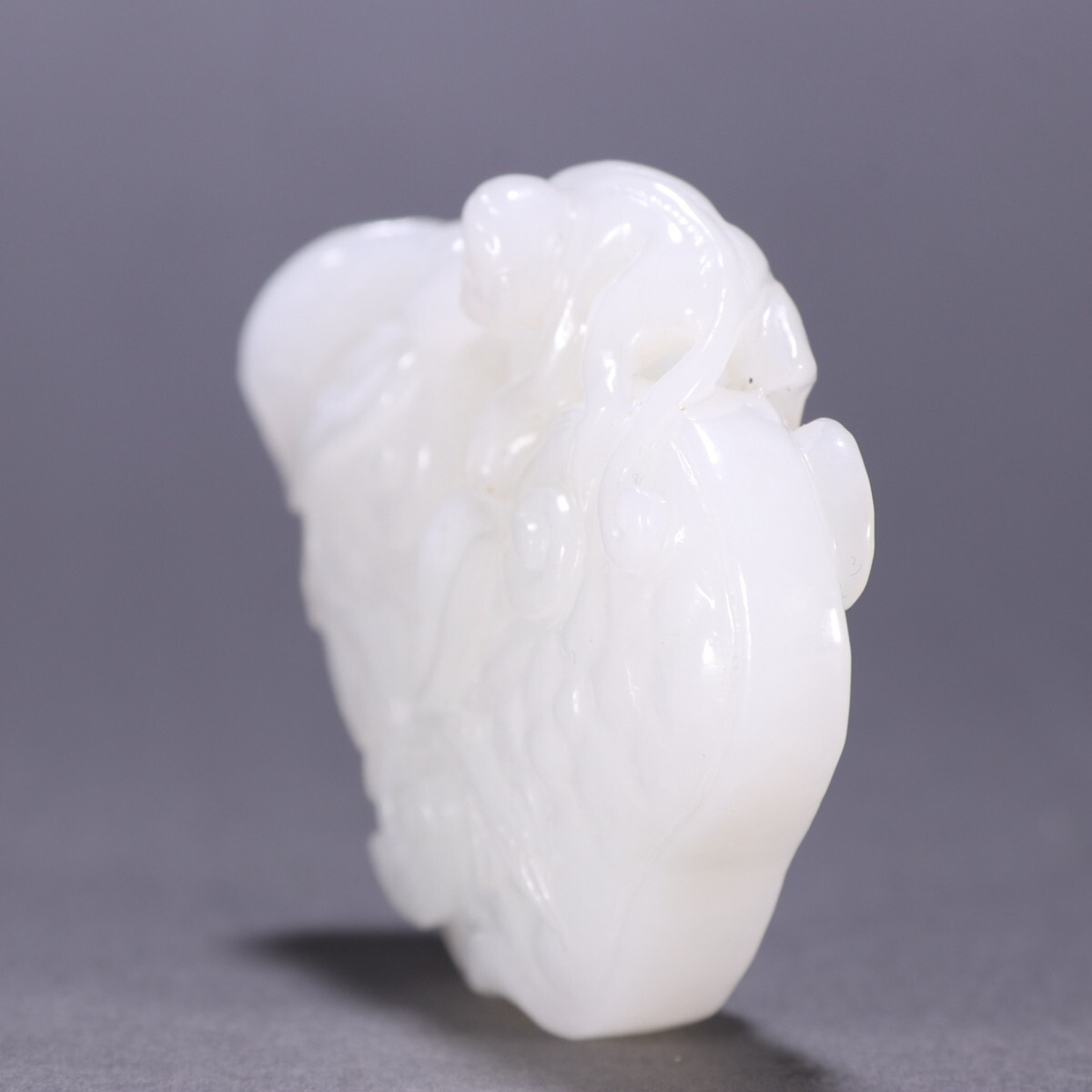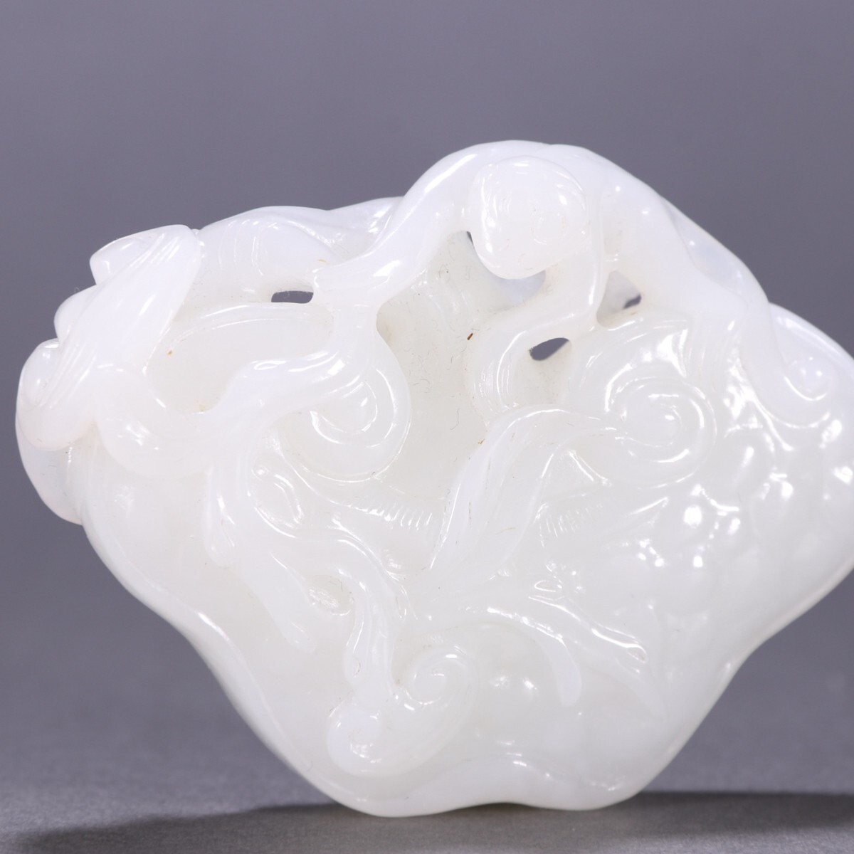 清時代 和田玉 白玉彫 霊猴如意鎖 掛件【仁】極細工 手彫り 裝身具 古賞物 中国古美術 蔵出