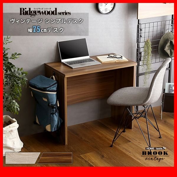 子どもから大人まで使えるリビングに合うヴィンテージシンプルデスク75cm幅! スタイリッシュ&スマートで場所や用途を選ばず使える万能ワークデスクです。 教科書&ノートを広々置ける学習机に。 趣味や家事のワークスペースとしても使えます。 しっかりした厚みの天板はキズや書き跡に強いPVC仕様です。 デスクのサイドにはランドセルやバッグが掛けれるフック付きです。 デスクの背面にはライトやパソコンのコードを通せる隙間を作っているので、スッキリ収納できます。 |