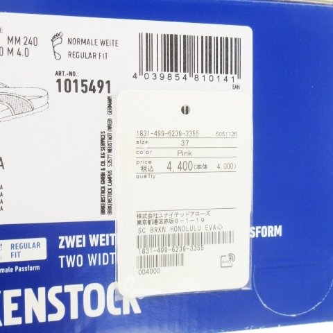 未使用品 ビルケンシュトック BIRKENSTOCK Honolulu EVA サンダル ビーチ シャワー トング 軽量 ロゴ 37 24.0cm ピンク