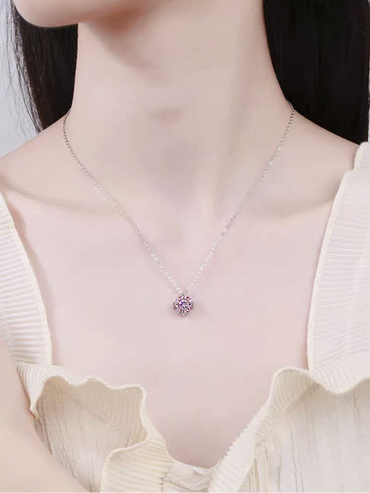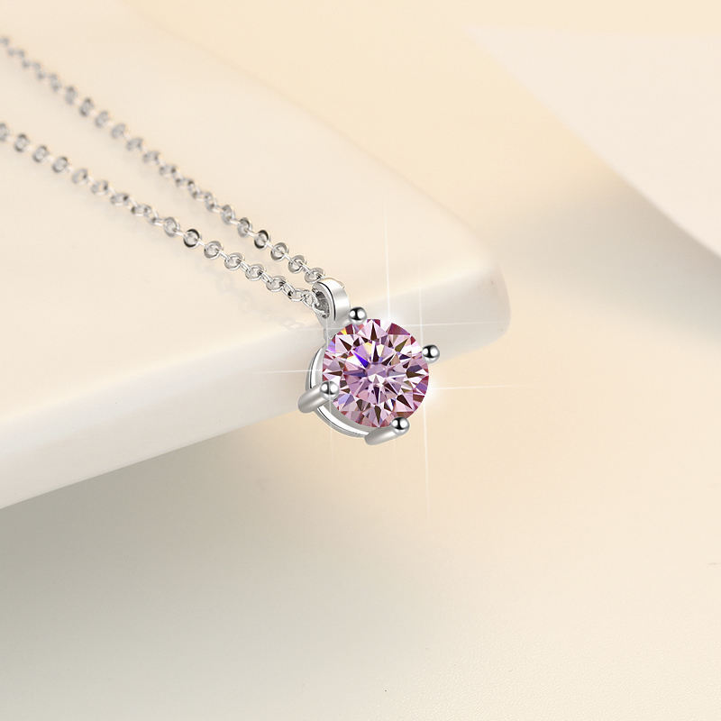 商品名 | ピンク モアサナイト 1ct 1粒 プチネックレス(SV925スターリングシルバー) |