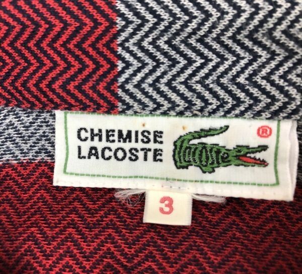 chemise シュミーズ LACOSTE ラコステ オールド トラッド 古着 ヘリンボーン ボーダー 長袖ポロシャツメンズ コットンポリ 3 赤 グレー です。