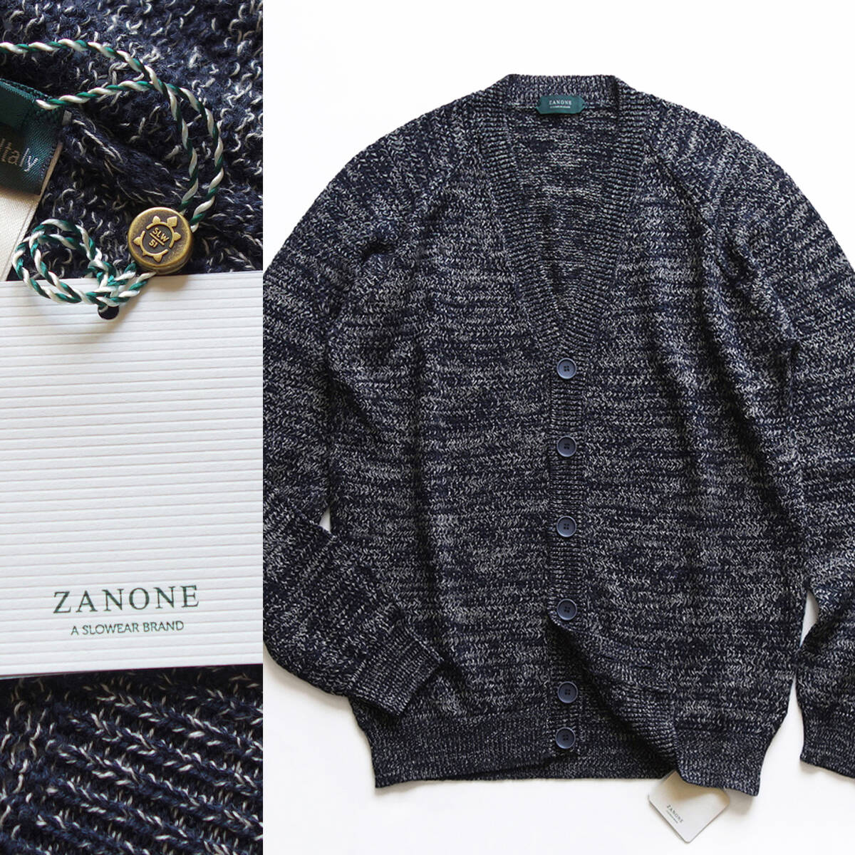 【 ZANONE ザノーネ 】 新品 春夏 リネンコットンバスケット編みニットカーディガン ネイビー基調 50 64,900円 48