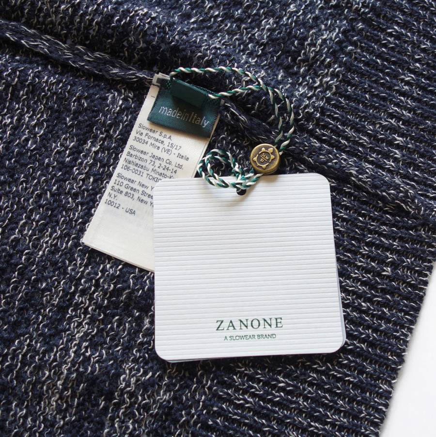 ヴェネツィアを拠点とするアパレルグループSLOWEAR(スローウェア)のニット部門を担当する「ZANONE(ザノーネ)」。1987年にALBERTO ZANONE(アルベルト・ザノーネ)氏によって創業されたザノーネは、一貫した高い品質追求と新しいことにも挑戦し続ける企業姿勢により、イタリア国内はもとより欧米においても高い評価を得ているイタリアでも指折りのニット専業ブランドです。フレックスウール、アイスコットン、カシミアシェードなど、永年の蓄積から生まれた独自の糸がたくさんあり、そこから流行に左右されることのないシンプルかつモダンなデザイン、そして完璧な着心地の製品を生み出しています。独特のサイジングバランスが素晴らしく、着心地の良さは別格と評されるザノーネのニットは、日常の洗濯や摩耗による劣化が少ないことも特徴です。厳選された糸と手間を惜しまない生産工程に秘訣があり、これこそがザノーネが世界中でニット製品の標準(手本)とされている由縁です。