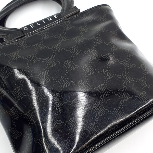 ◆良品◆ セリーヌ CELINE ハンドバッグ ミニバッグ 鞄 マカダム柄 エナメル 黒 ブラック系 レディース 01-25082601-b