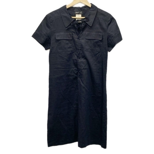 アニエスベー agnes b サイズ40 M - 黒 レディース 開襟/半袖/ひざ丈 美品 ワンピース