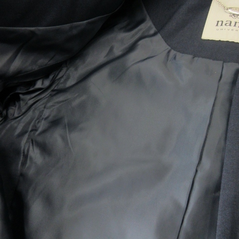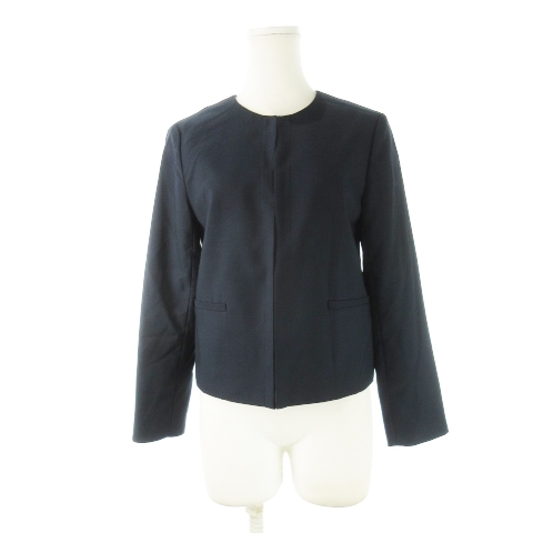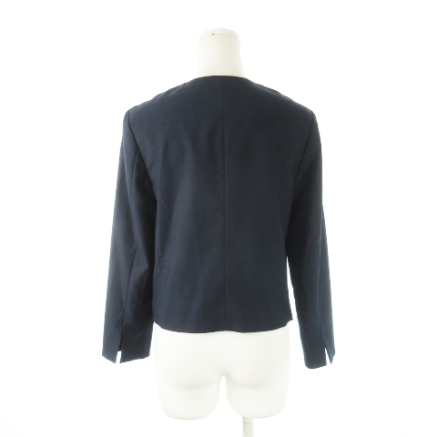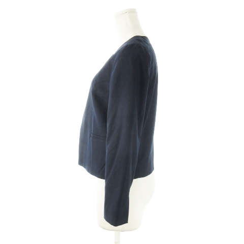 ナノユニバース nano universe ノーカラージャケット 総裏地 ストレッチ 袖口スリット 36 S 紺 ネイビー /CK10 レディース