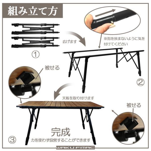【訳アリ】 waku fimac アウトドアテーブル キャンプテーブル ウッド 調 ロールテーブル ソロ キャンプ (INF3676-OUT#1670)P