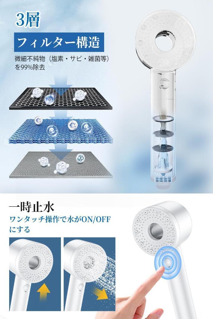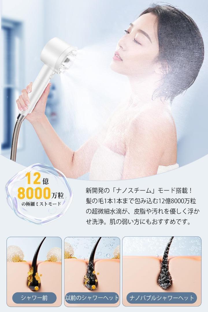 シャワーヘッド マイクロナノバブル 【肌奥までに浸透超微細泡・90%節水】超微細泡シャワーヘッド 高水圧 5段階モード 塩素除去 節水 高洗浄力 手元止水 しゃわーへっど 毛穴 ケア 汚れ 除去 美肌 保湿 頭皮に肌に優しい ミストシャワー 保温 保湿 うるおい 水漏れ防止 取り付け簡単 4種類アダプター付き 1枚フィルター付き (ホワイト, フィルター付き)