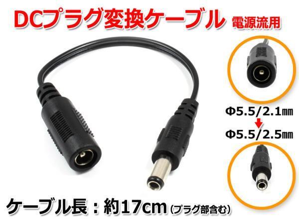 外径5.5mm/内径2.1mmのDCプラグを外径5.5mm/内径2.5mmのDCプラグに変換できるケーブルです。