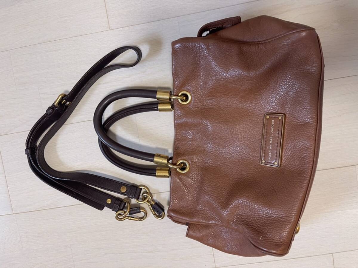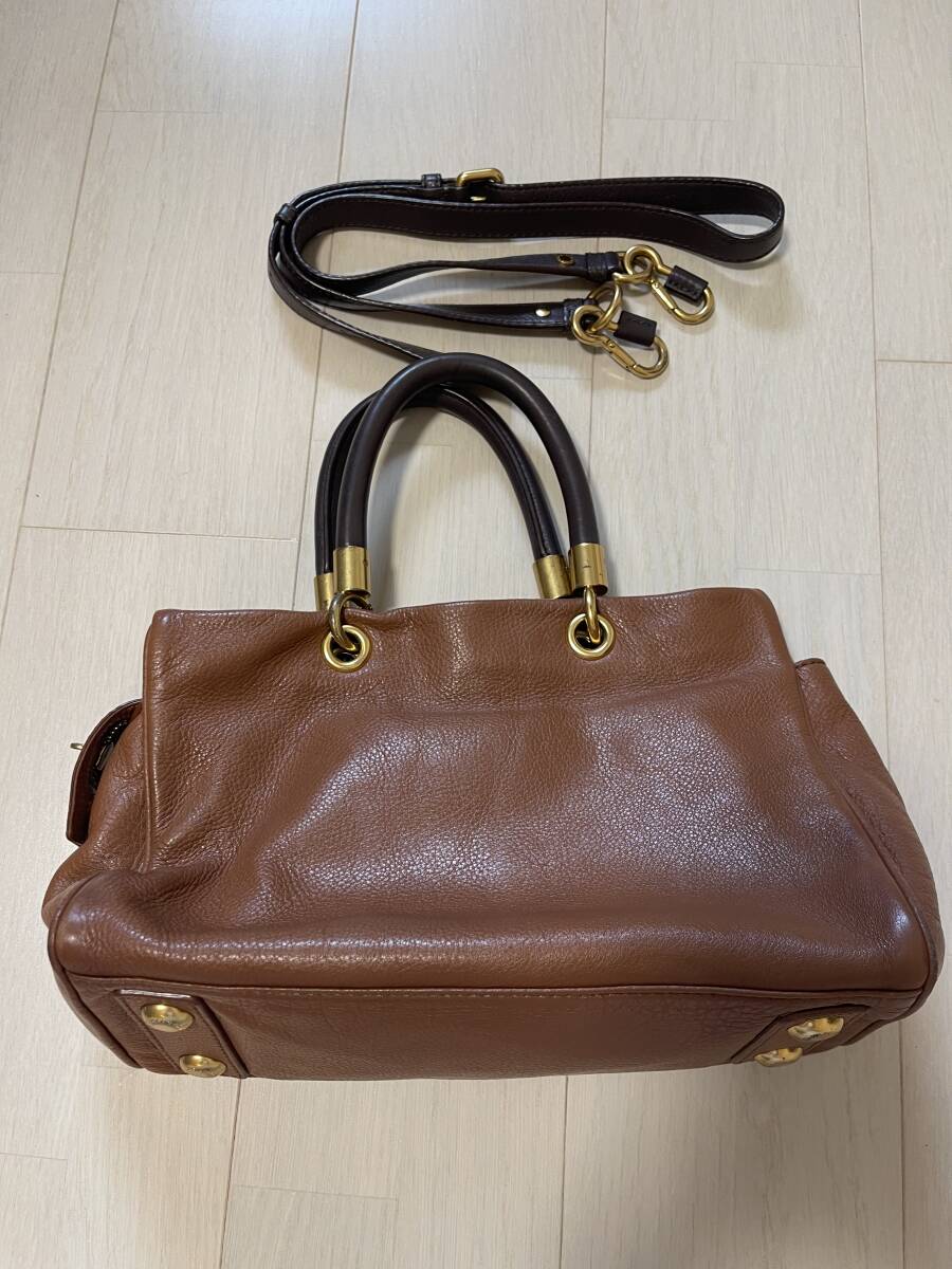 マークバイマークジェイコブス 2way ショルダーバッグ ロゴ シボ革 ブラウン