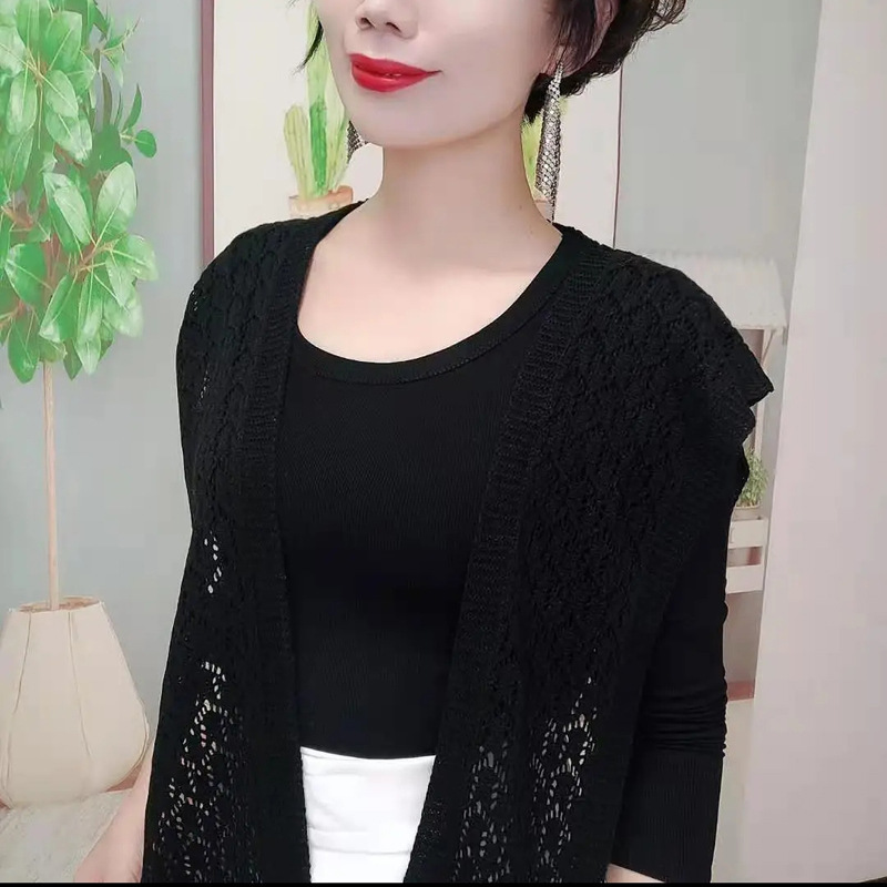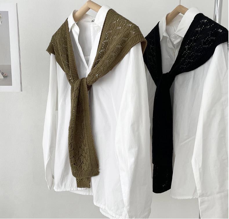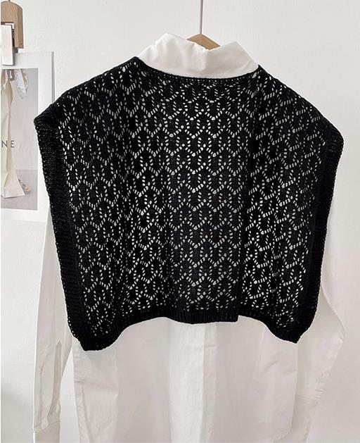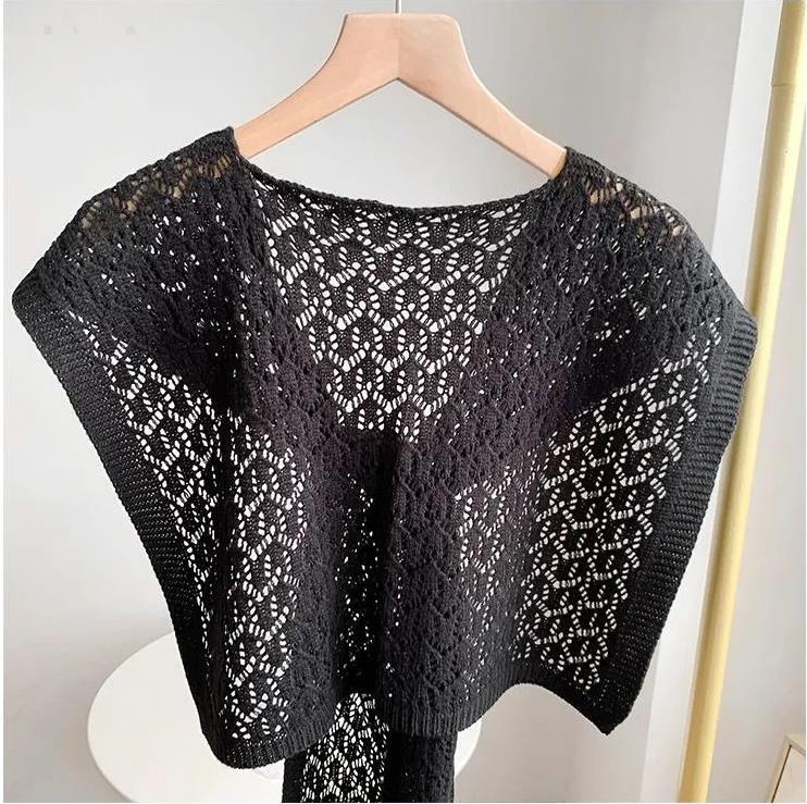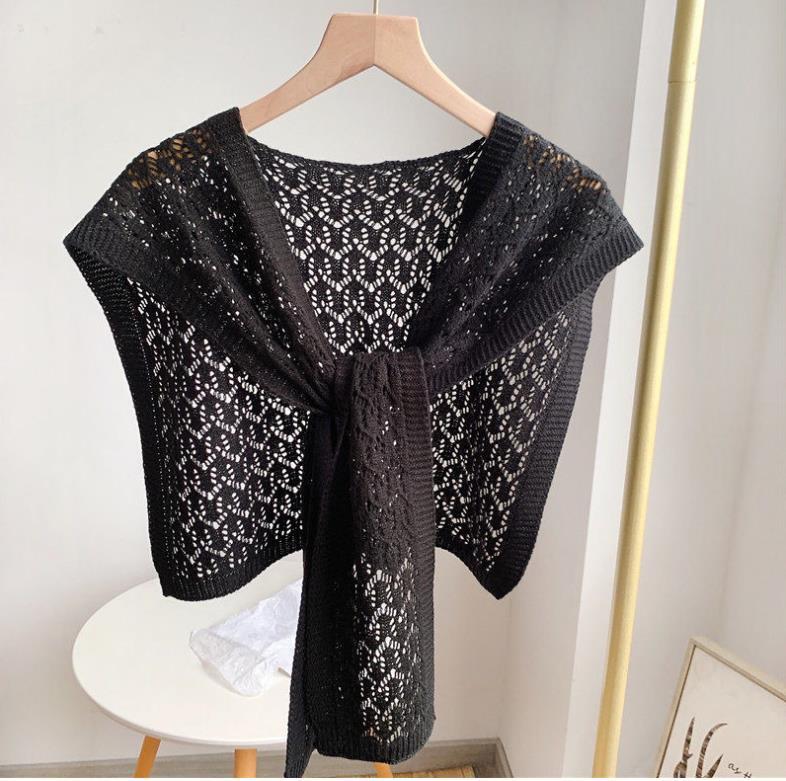 【PJ-37】新品 ストール 肩掛け ニット編み付け襟 ストール 春夏秋肩冷え対策 飾りストールショール ブラック