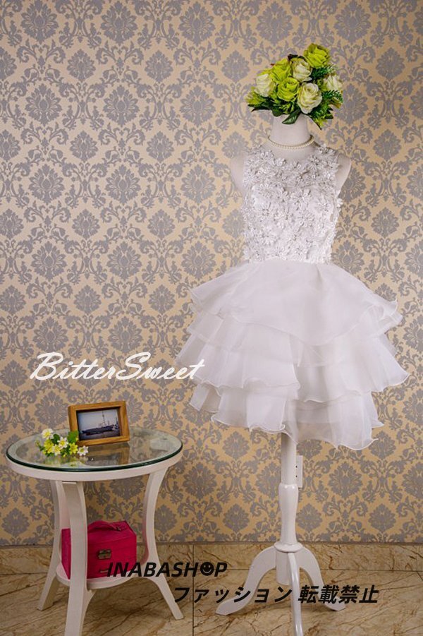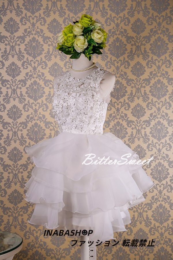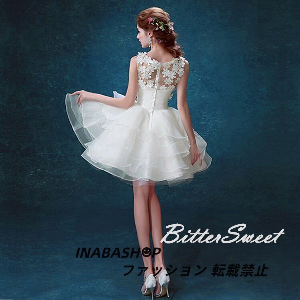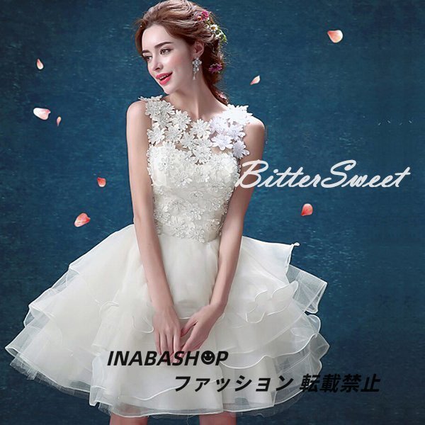 ウェディングドレス ウエディングドレス ミニドレス ショートドレス パーティードレス Aライン ファスナータイプ【ホワイト】