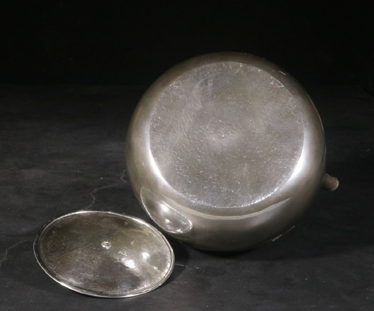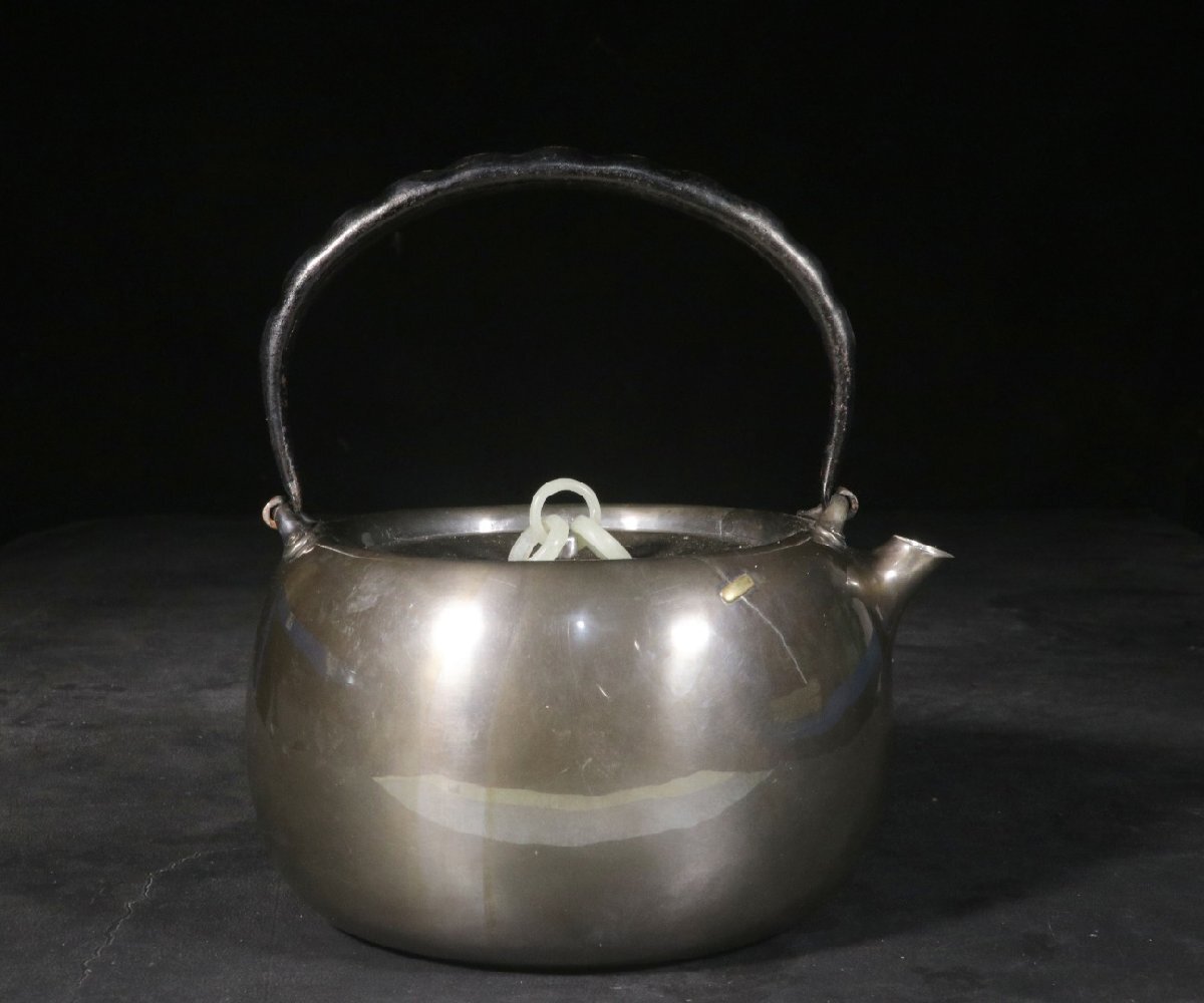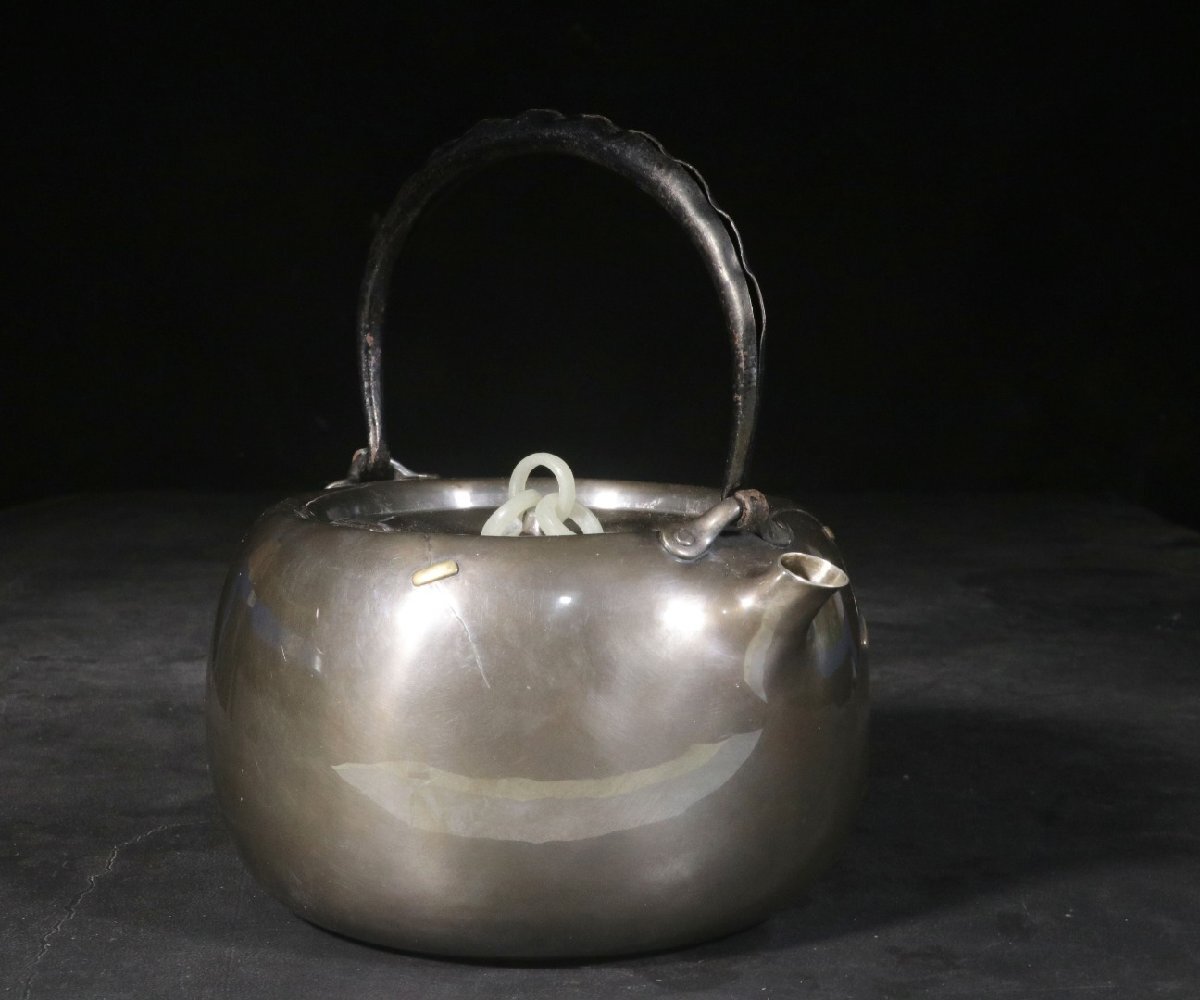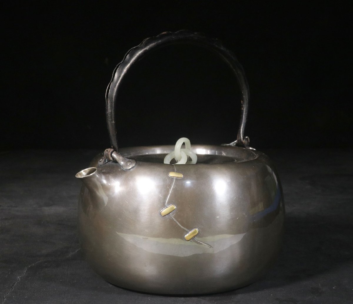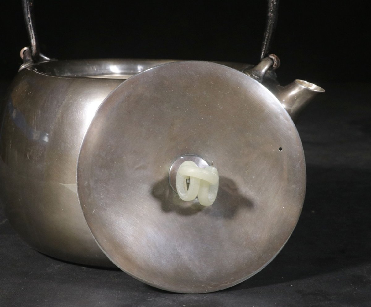 【安】銀瓶 在銘 純銀製 湯沸 翡翠摘鈕 補丁紋鉄把茶壺 煎茶道具 極細工 茶壷 急須 古美味 時代物 古董品 249 サイズ(約寸) |
