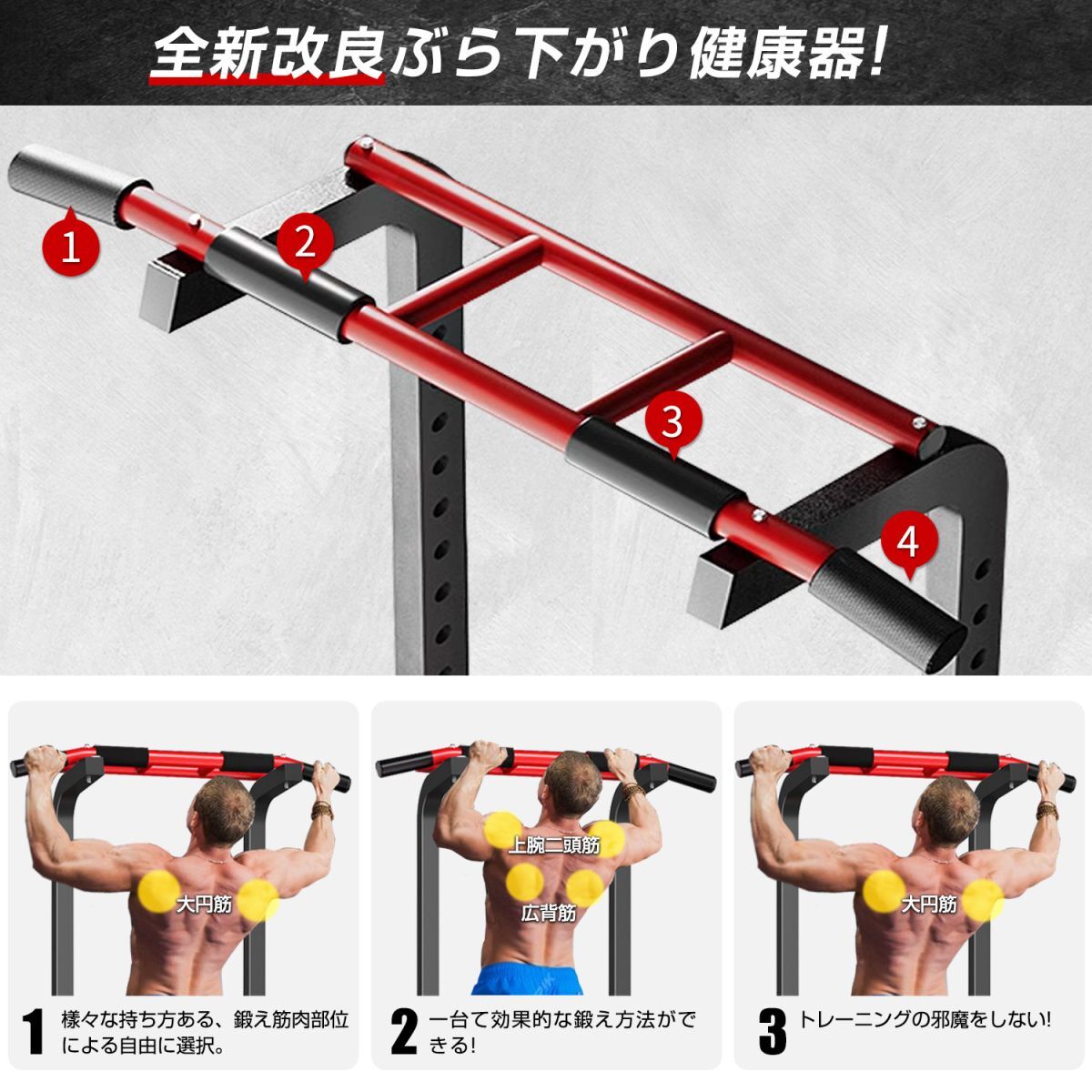 ●様々な筋トレ:腹筋、胸筋、腕、ピップ、ウエストの力を鍛えたい方、この懸垂マシン1台で筋トレからストレッチまでできるので、トレーニングチューブ付き,ご家族みんなで使用できます。ぶら下がり健康器として使用頂けば、基礎代謝の向上や、リラックス効果に。