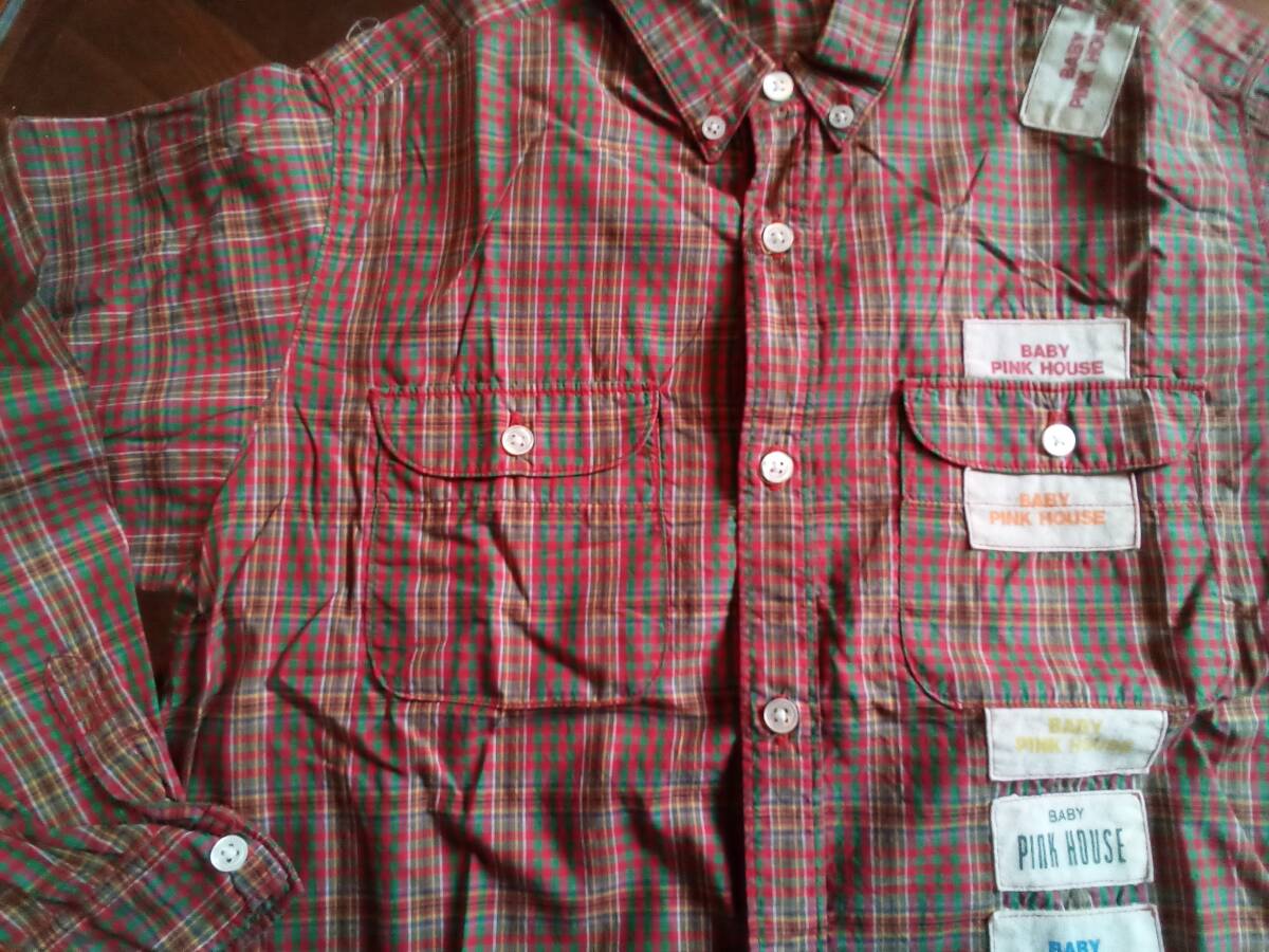 こちらはベビーピンクハウスの長袖ボタンダウンシャツです、前にワッペンが付いていてとてもかわいいシャツです、サイズは120cmです、肩幅35cm身幅46cm着丈58cmです、大きなダメージはありませんが自宅保管ですのでご理解の上入札してください。