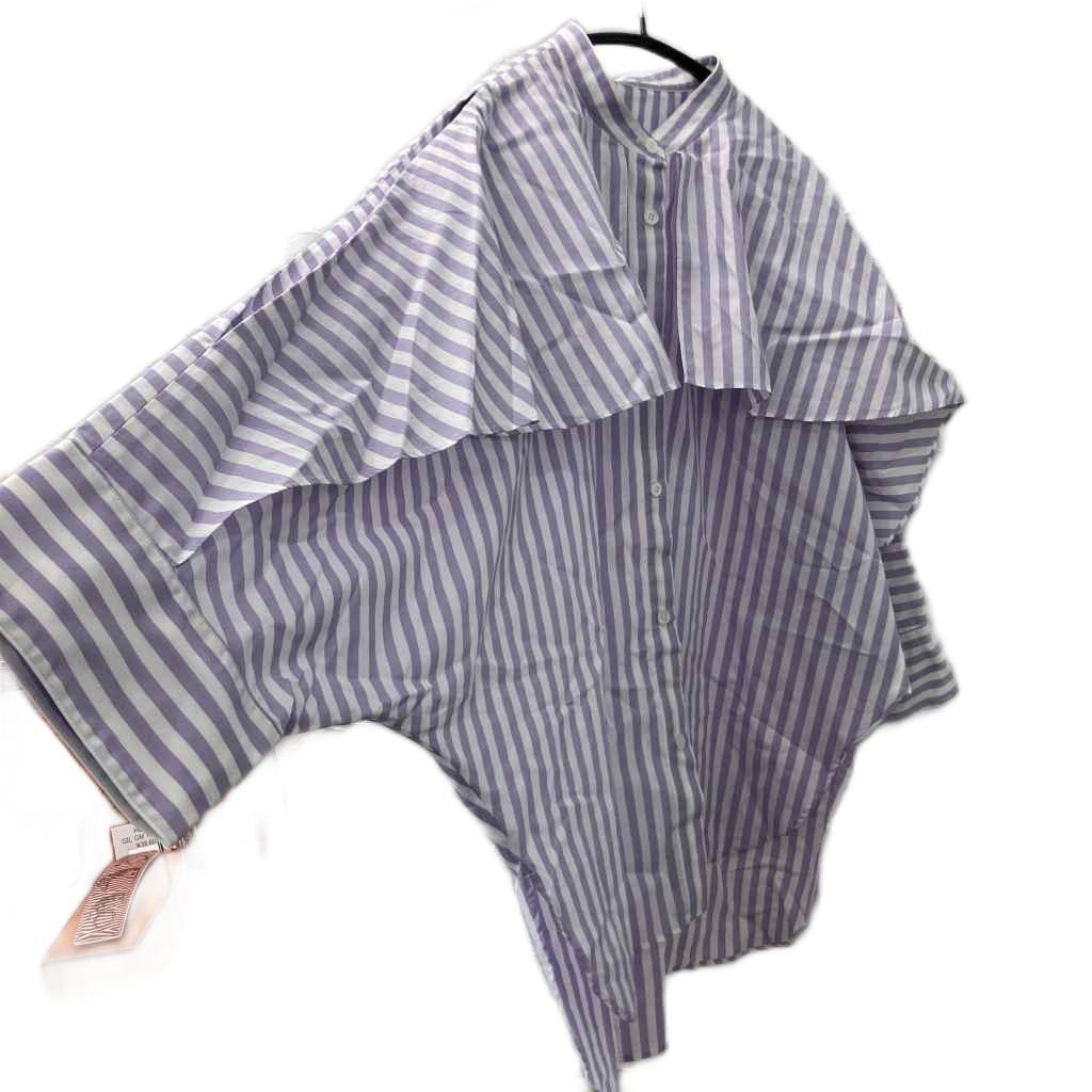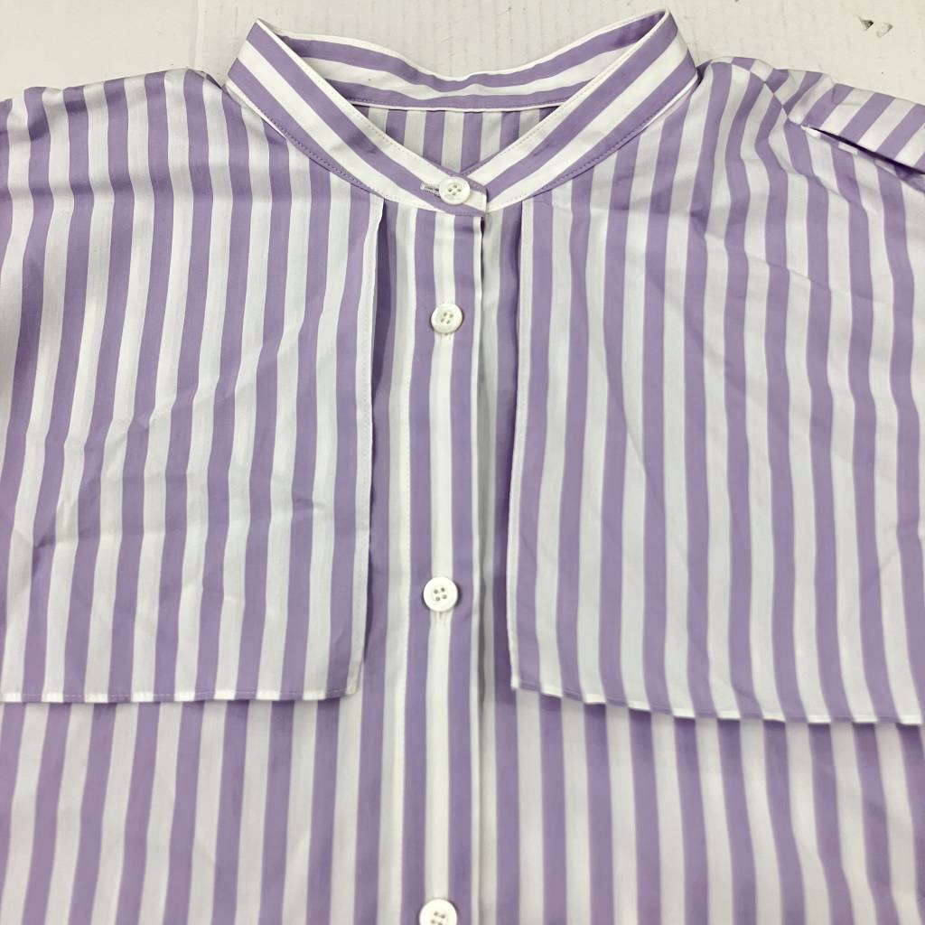 ルフィル LE PHIL 23SS ショルダースリットブラウス シャツ ストライプ 534-3110412 紫 パープル F