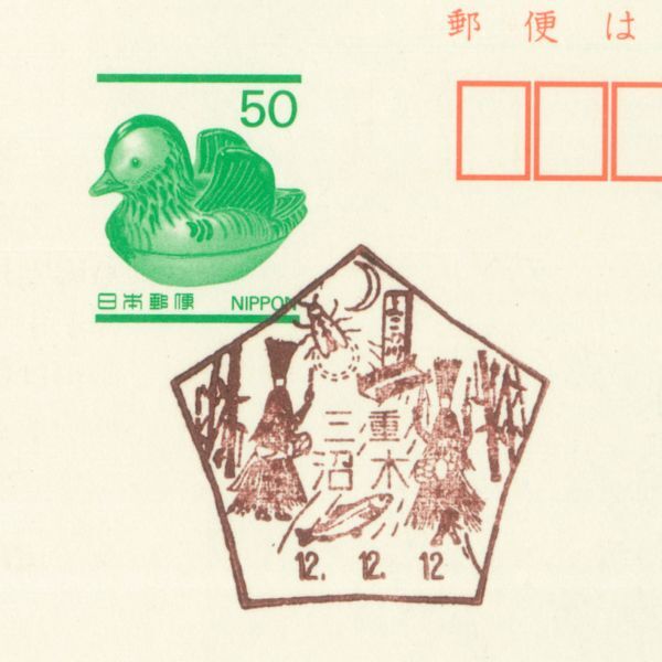 風景印☆初日☆三重・沼木・H12.12.12・ホタル・変形枠