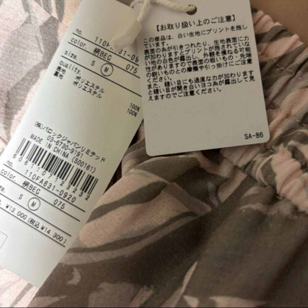 衣類発送時のたたみ皺はご了承願います。