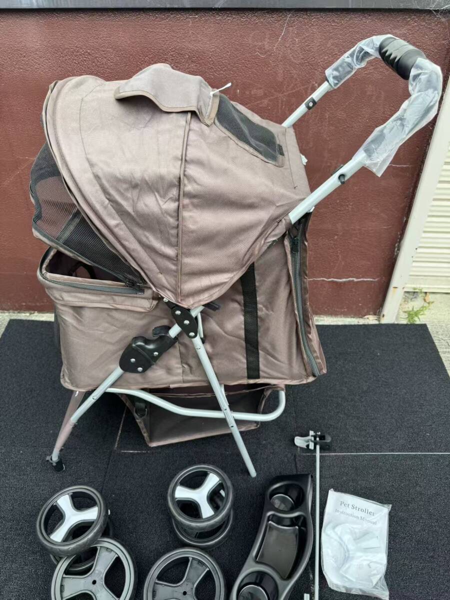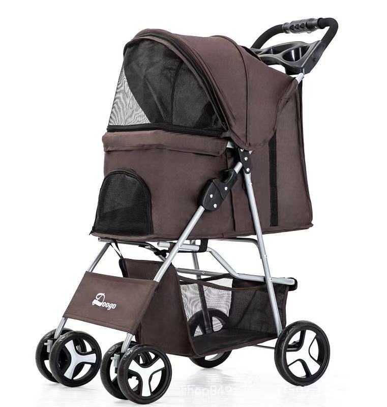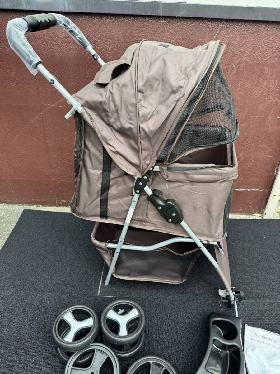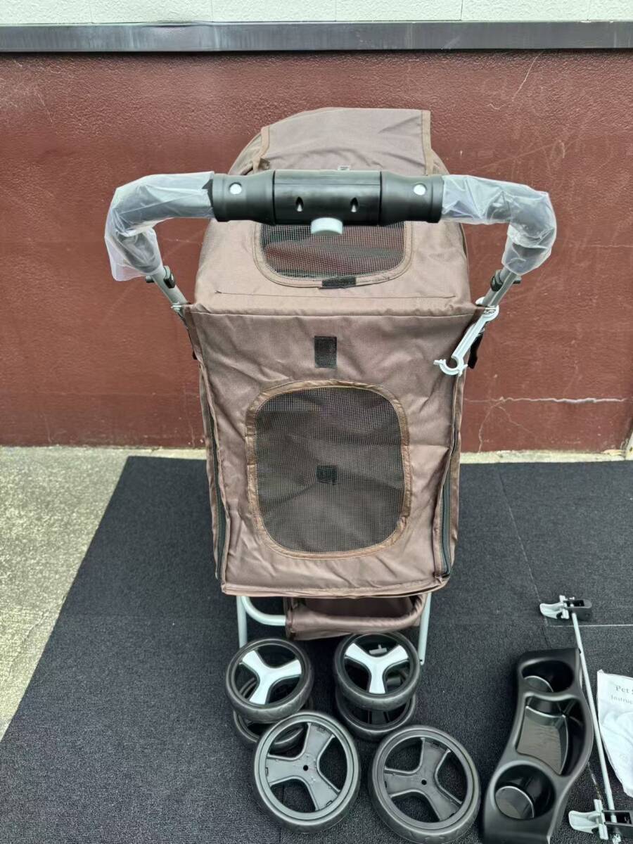■新品■茶色 折畳式 ペットカート 3way 対面式 4輪 犬用ベビーカー 前輪360°回転 後輪ブレーキ付 猫犬兼用 多頭 介護用 ペットバギー | |||