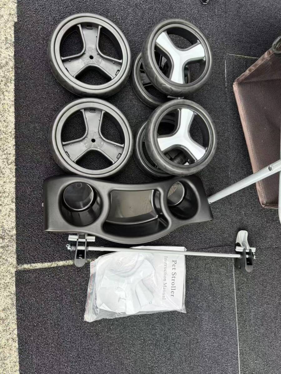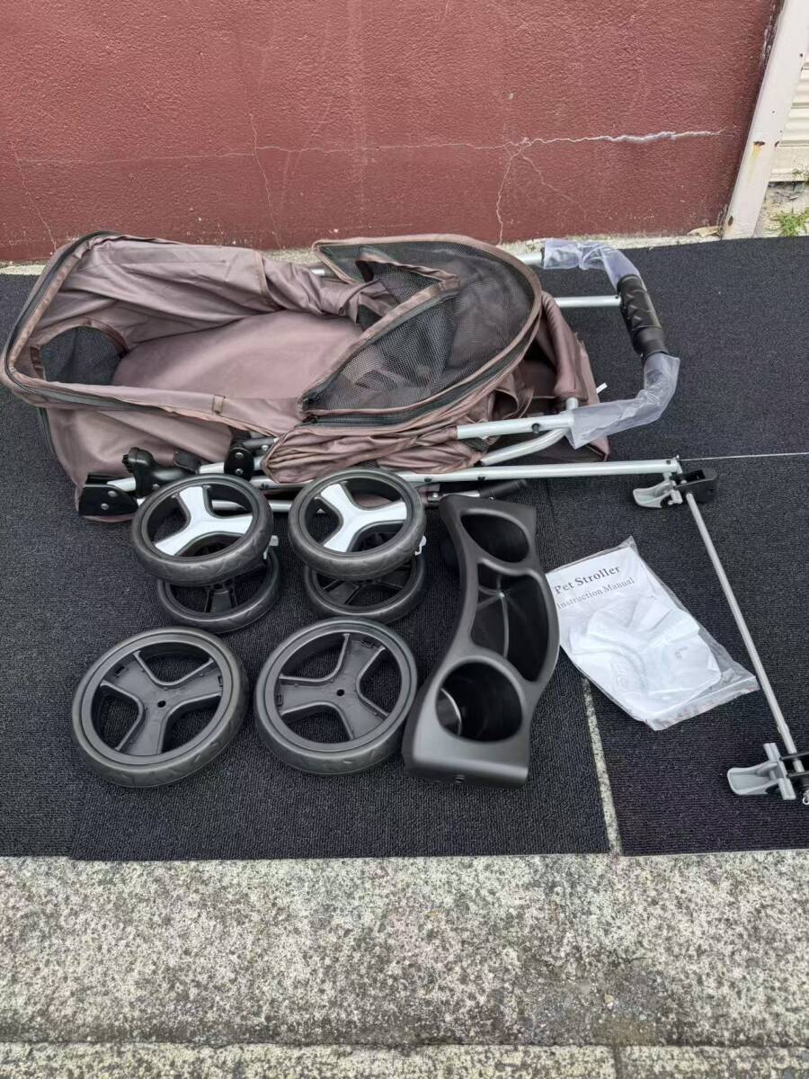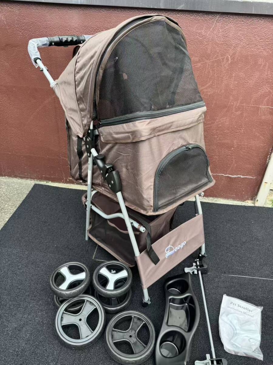 ■新品■茶色 折畳式 ペットカート 3way 対面式 4輪 犬用ベビーカー 前輪360°回転 後輪ブレーキ付 猫犬兼用 多頭 介護用 ペットバギー | |||