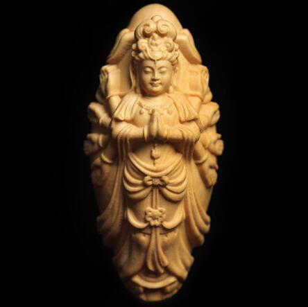高級木材 柘植木 良品 可愛い千手観音菩薩 仏具 仏像 置物 お守り 根付 縁起物 55mm
