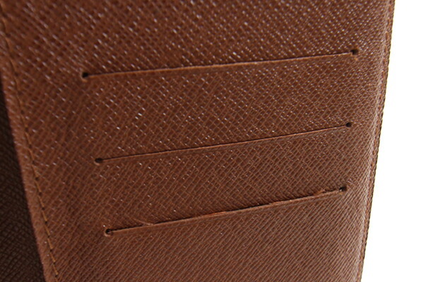 状態 | 外側:フチ周りに反れが強くあり。モノグラム部分多少テカリ感アリ。角にスレあり。 内側:カード入れに使用跡、フチに薄スレあり。 金具:- |