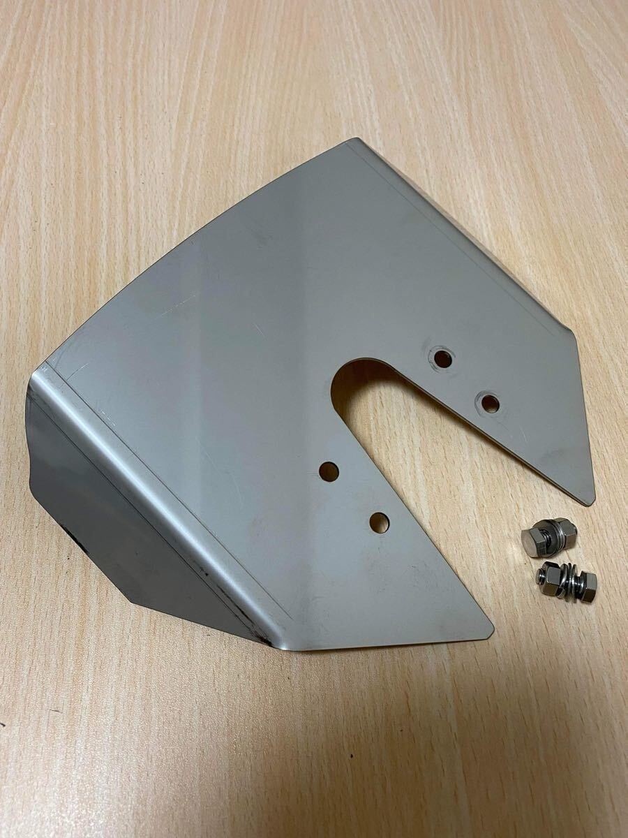 | HONDA ホンダ 2馬力 船外機用 スタビライザー BF2D・BF2DH共用 低価格の穴あけ加工タイプ 大量に製造出来る様にした事でお安くなりました。 板厚2mmで強度も抜群です。 旧タイプ(BZBF)対応 現行タイプ(BAAC)対応 【スタビライザーの効果】 滑走(プレーニング)というのは物体を支えるのに浮力よりはるかに大きな揚力が作用して航走している状態をいいます。 船底に働く揚力によって艇体が持ち上げられ、滑走状態になるとバウが下がり水に対して3°~5°のトリム角(縦傾斜)で水面を滑るように走行するのが特徴です。 よってスタビライザーも3°~5°のトリム角で常に裏面に働く揚力が発生します。 それによって船外機が持ち上げられ滑走状態により早く持ち込みます。 様々な形状のスタビライザーでテストしましたが、格好良いのですが、スタビライザーの左右を平行90°曲げてしまうと、スタビライザー裏面に当たった水の逃げ場が分散されず後方だけになり、滑走状態時に流速が追いつかず滞留してしまい、スタビライザーの揚力が落ちてしまいプレーニング効果が落ちる傾向にあります。 強度を保つのにスタビライザー本体の曲げは必要です。 強度を保つ最低限の折曲げで、尚且つ後方に水が流れ易くなる様、後方に広がるテーパー状に曲げ加工を施し流速を確保しプレーニング効果が落ちない様、本製品は設計されてます。 是非、本スタビライザーの効果を体感してみて下さい。 滑走状態が長い程、燃費もかなり良くなります。 材質:SUS304(ステンレス) 2B材使用 2.0mm レーザーカット後折り曲げ加工 塩害(サビ)に強く、曲げ加工により強度は抜群です。 船外機を横置きした場合もペラを保護してくれます。 (海水にて使用しましたが全くサビません) 船外機への加工が必要です。 (左側はアノードメタル共締めで右側はアノードと同じピッチで穴をあけで付属のボルトで取り付けます。取付ボルトは付属します(ステンレス製) 船外機下部へのプロペラからの水の跳ね上げがかなり軽減されます。 (エンジンへの海水の飛散が減ります) 当方オリジナル製品となります。 注)加工時に付くキズ、油、焼け、ドロスの付着、バリ等御座います。 全ては画像にて判断願います。 |
