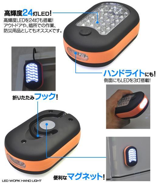 | 商品説明 | ◆コンパクトで明るいLEDライトです。 ◎停電対策、暗所での作業に ■LEDだから消費電力・長寿命・高輝度! ■高輝度白色LEDを24灯も搭載した強力なワークライト(作業灯) ■側面にもLEDを3灯搭載!ハンドライトとしても使用可能です! ◆サイドの3灯のみ点灯、前面の24灯点灯の切り替えが可能! ◆キャンプや旅行などに。停電時や緊急時の室内灯にも。 ◆背面にマグネットが付いているので,冷蔵庫、車の修理など金属の表面に付けられ便利です。 ■折りたたみフック付き!壁に掛けたりするときに便利です。 ◆LEDなので熱くなる事もなく安心、安全です。 ◆停電対策にもどうぞ! ■電池は軽量で揃えやすい単4乾電池を使用! ◆単4電池3本使用(別売り) |