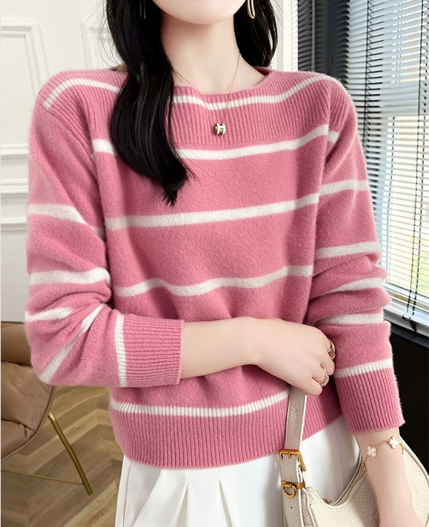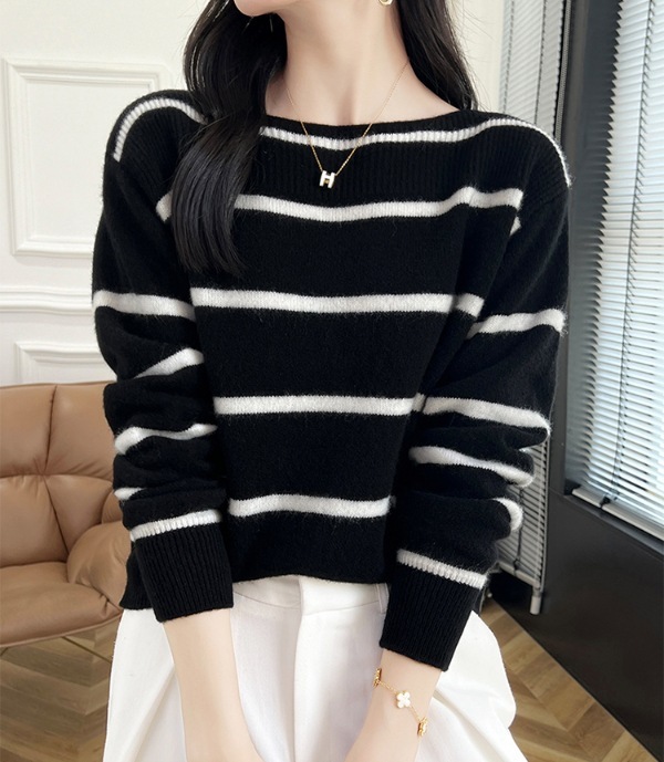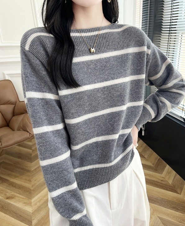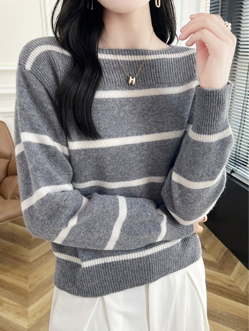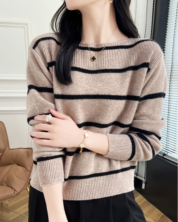 同梱1万円送料無料■ボーダー ニットセーター レディース 長袖 ショット丈ニットソー ニットトップス 通勤 気質 大人気 セーター■ブラウン