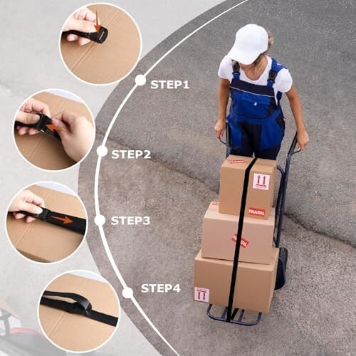 ??【使用簡単】荷崩れ防止の固定ベルトはカムバックル式のロック、ベルトをバックルの下から通して引っ張るだけで固定できます、使いやすいです