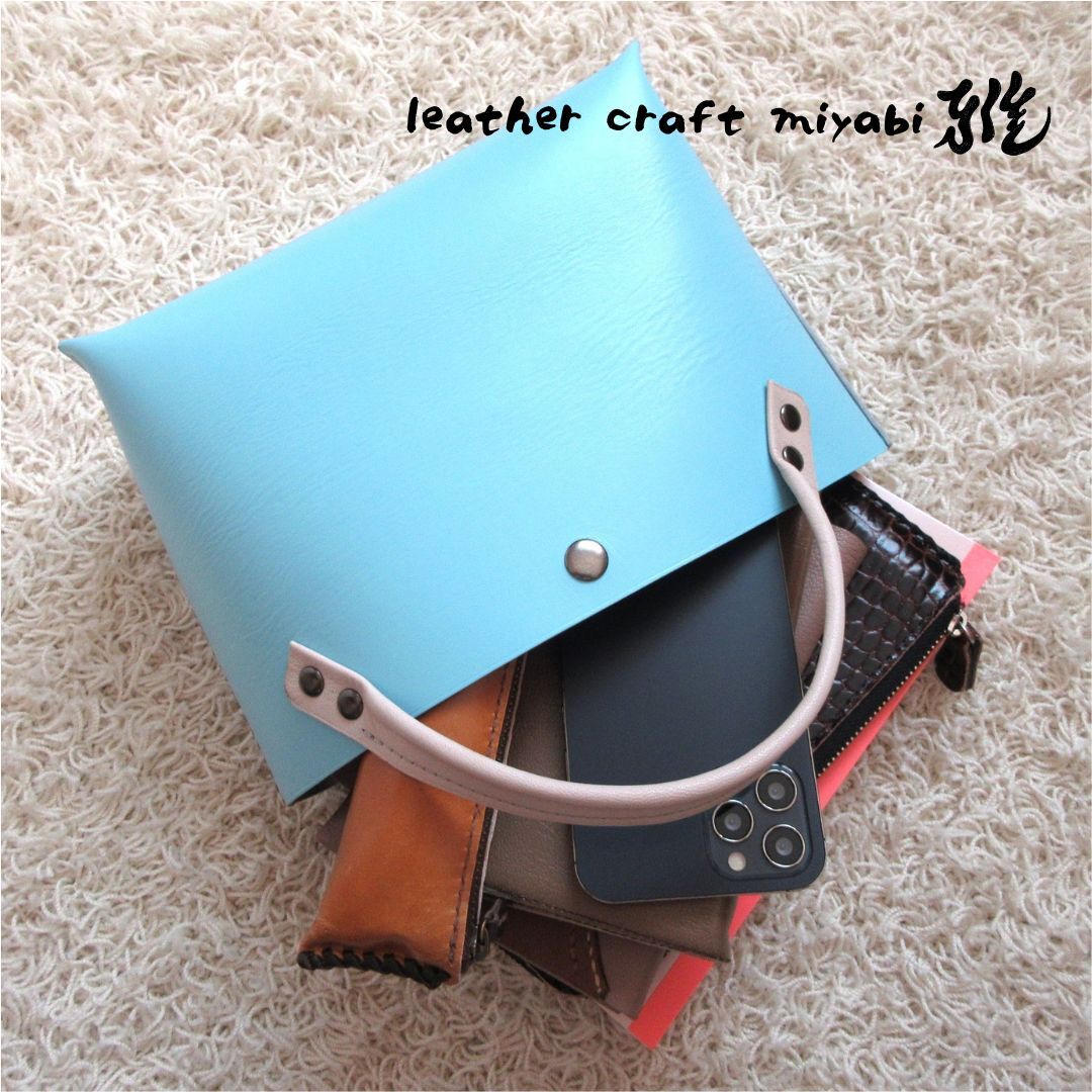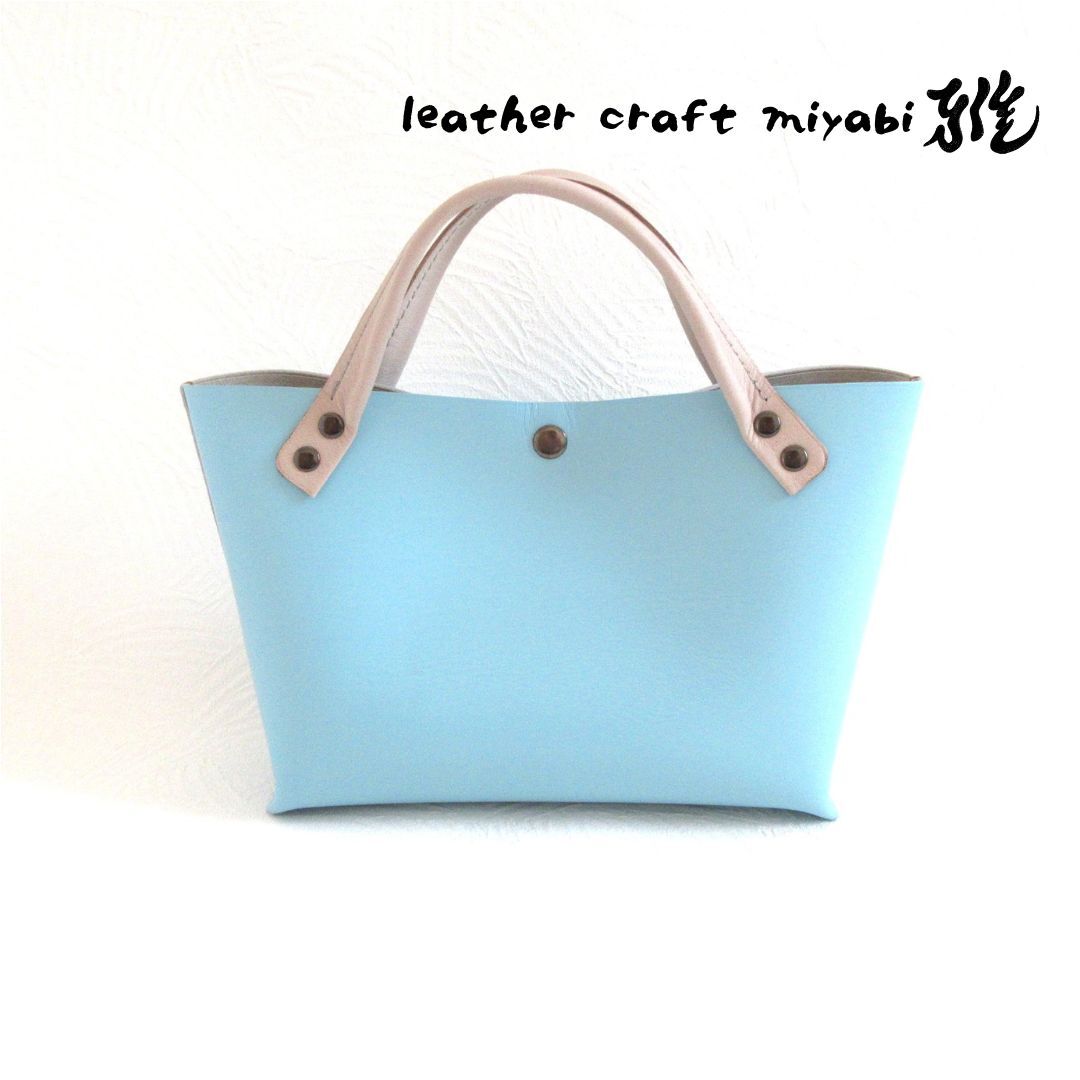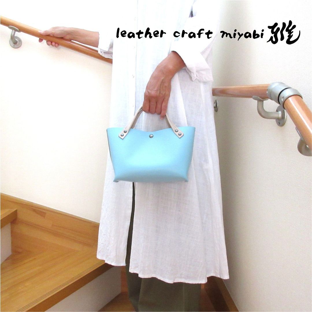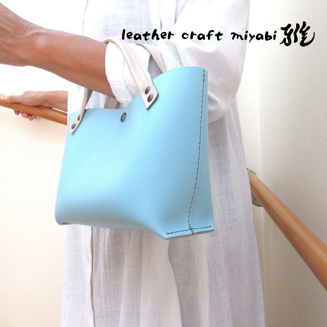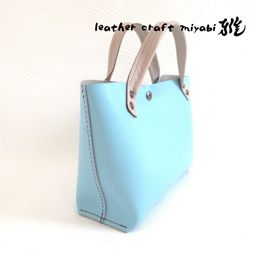 【L.C 雅】手縫い☆ショート丈♪《牛革》底マチワイド・一枚革のミニトート・水色・0643