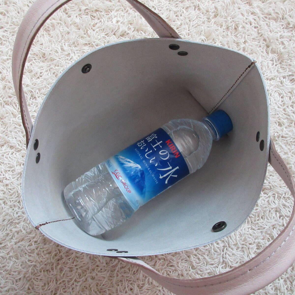 ◎ハンドルには薄くしなやかなベージュのシュリンクレザーを合わせました。