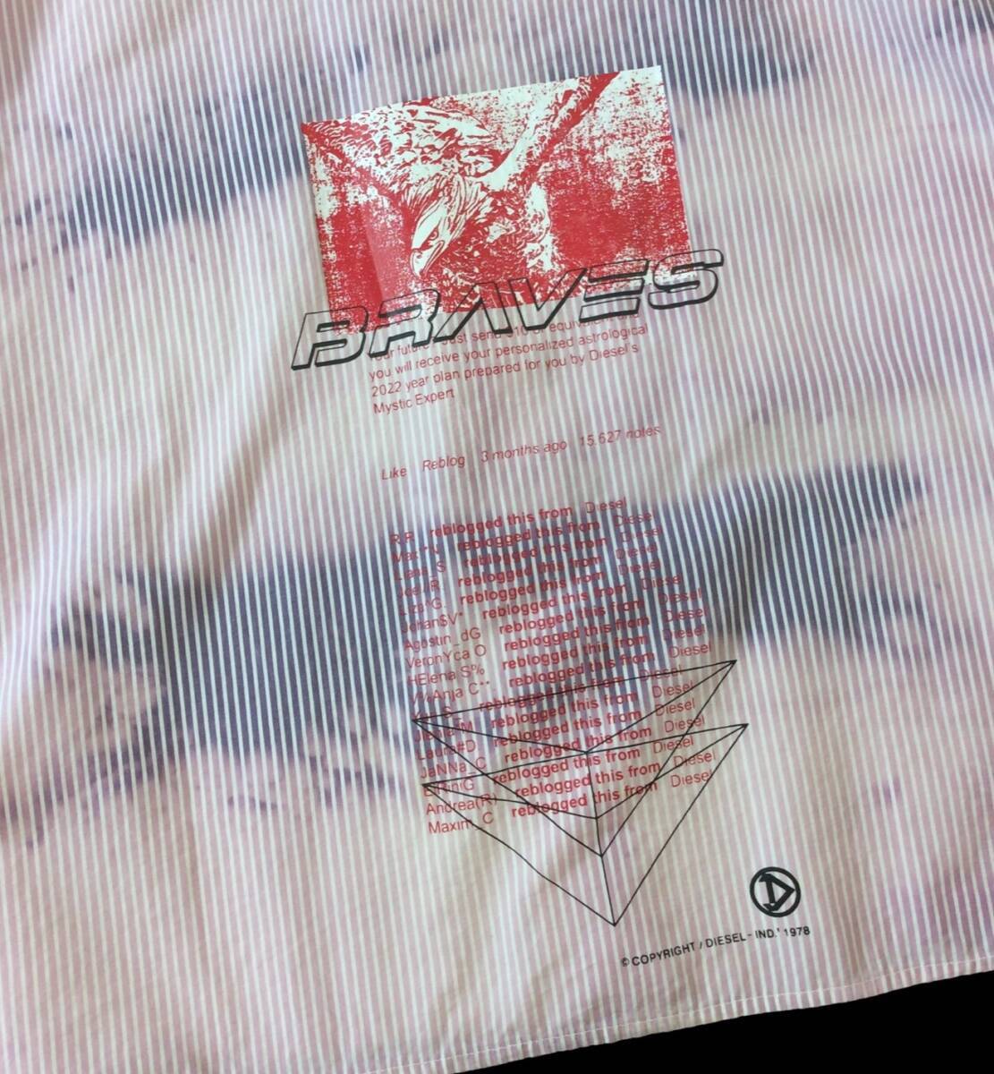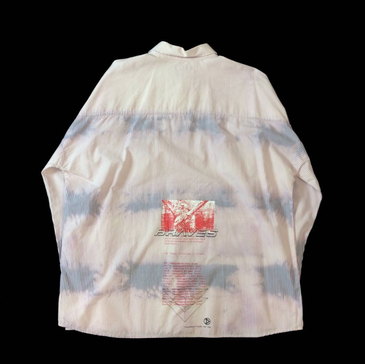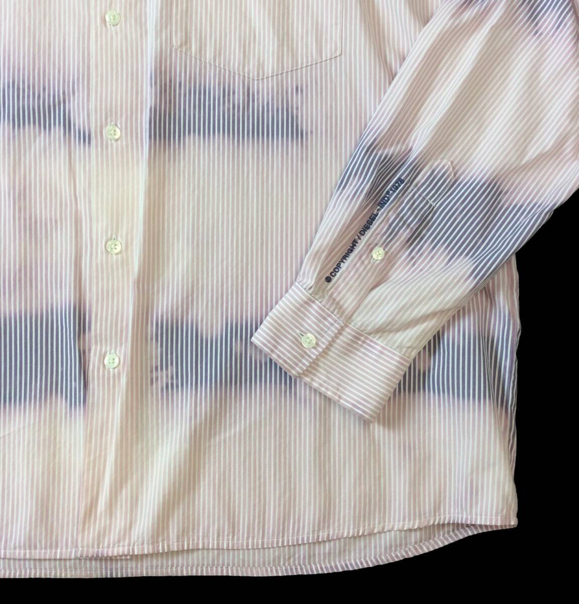 DIESEL ディーゼル ストライプ 長袖 シャツ オーバーサイズ バックプリント ピンク/ホワイト グラデーション メンズ L