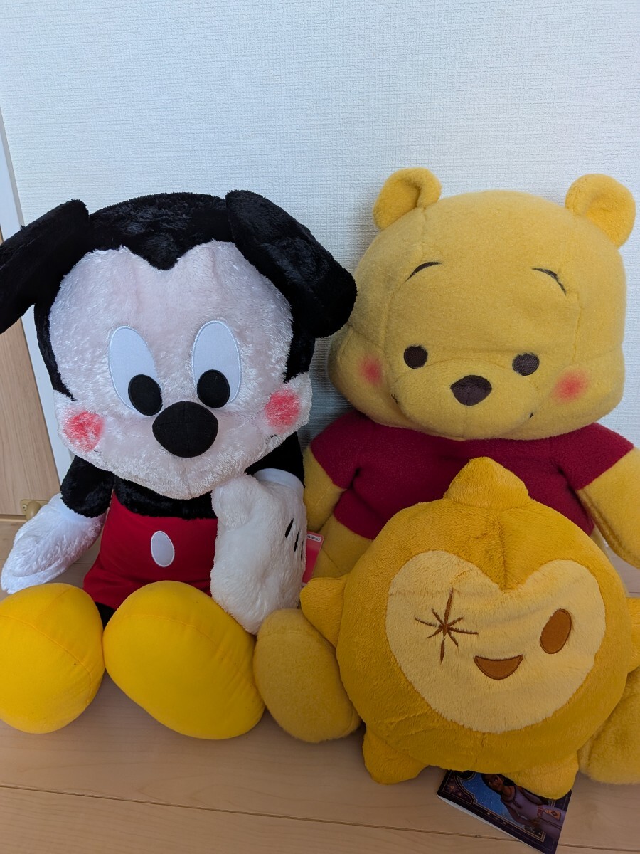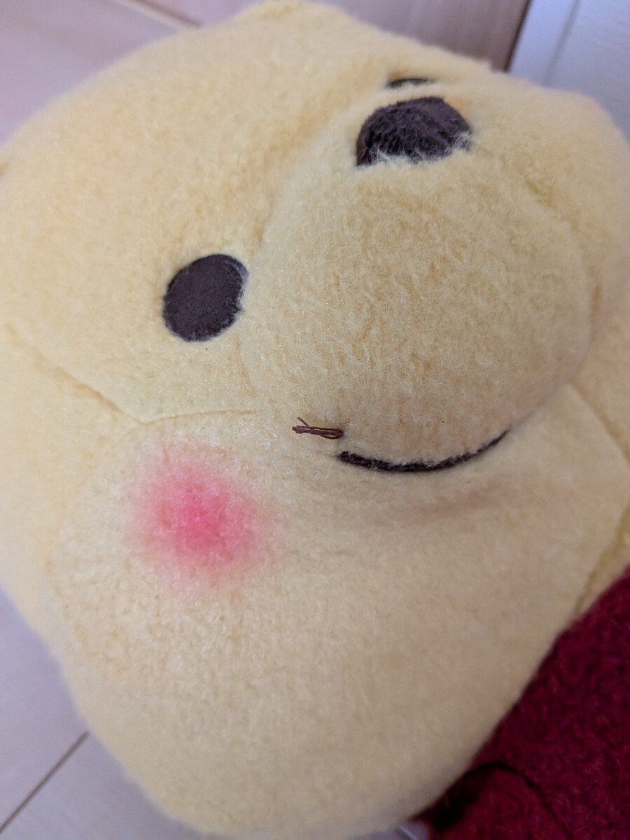 プーさん口横糸のほつれあり写真にてご確認ください。プーさん若干綿がヘタってる感じあり。