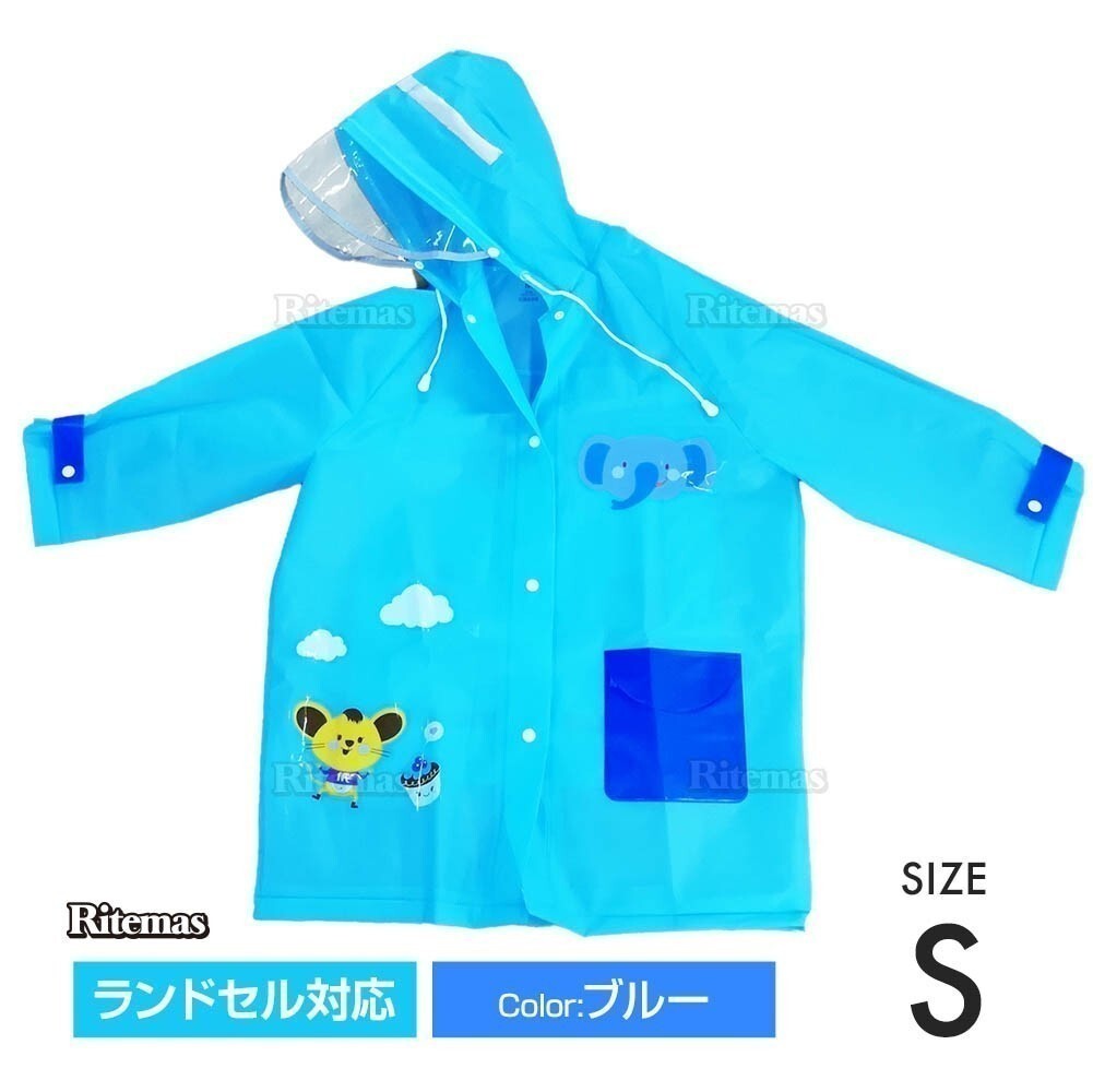 レインコート ランドセル対応 反射テープ 収納袋 子供用 かっぱ 雨合羽 子ども リュック 幼稚園 保育園 小学校 低学年 ブルー Sサイズ
