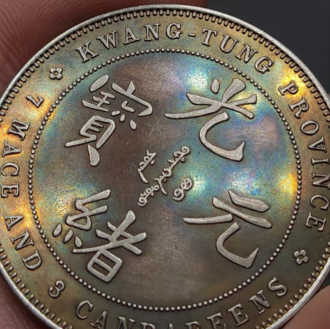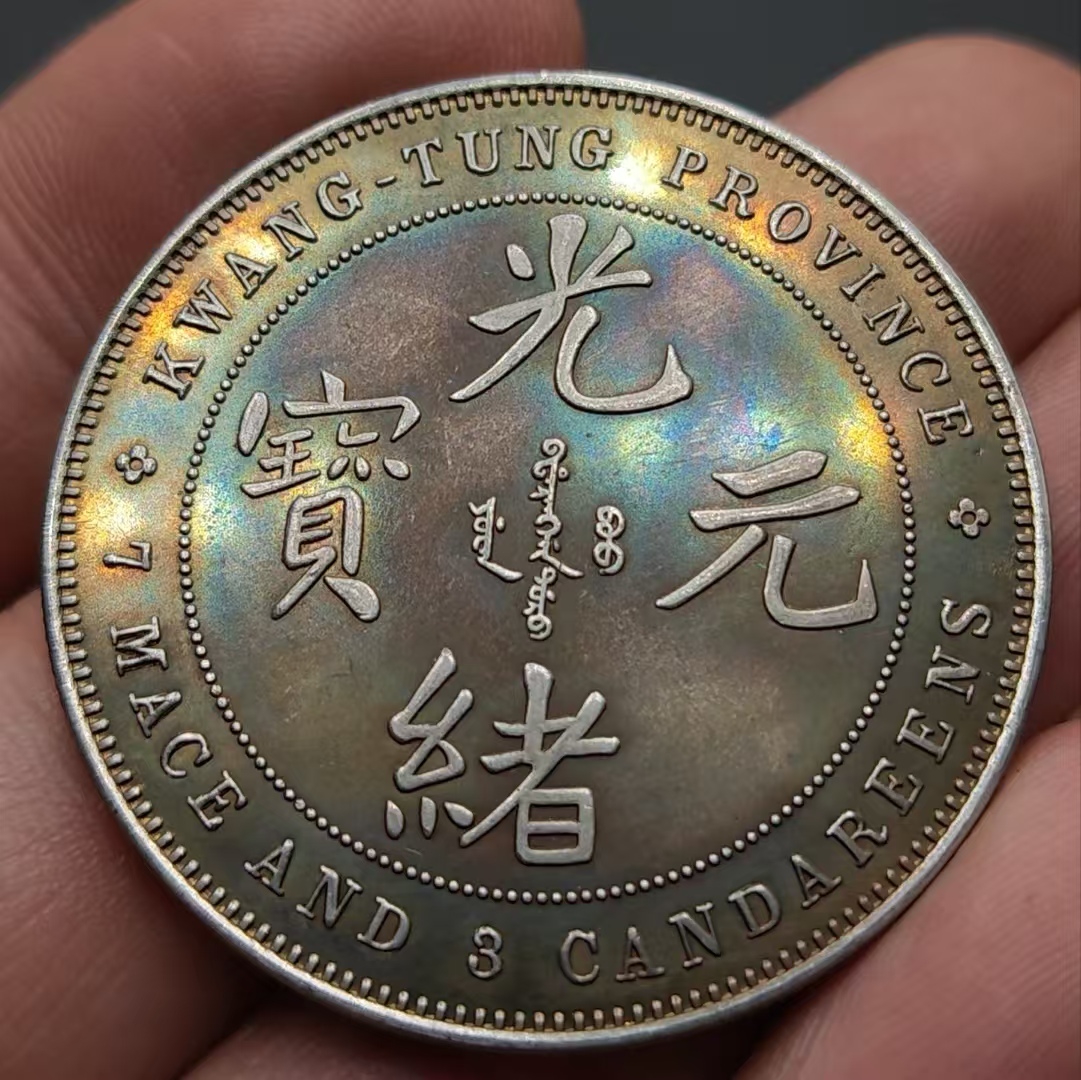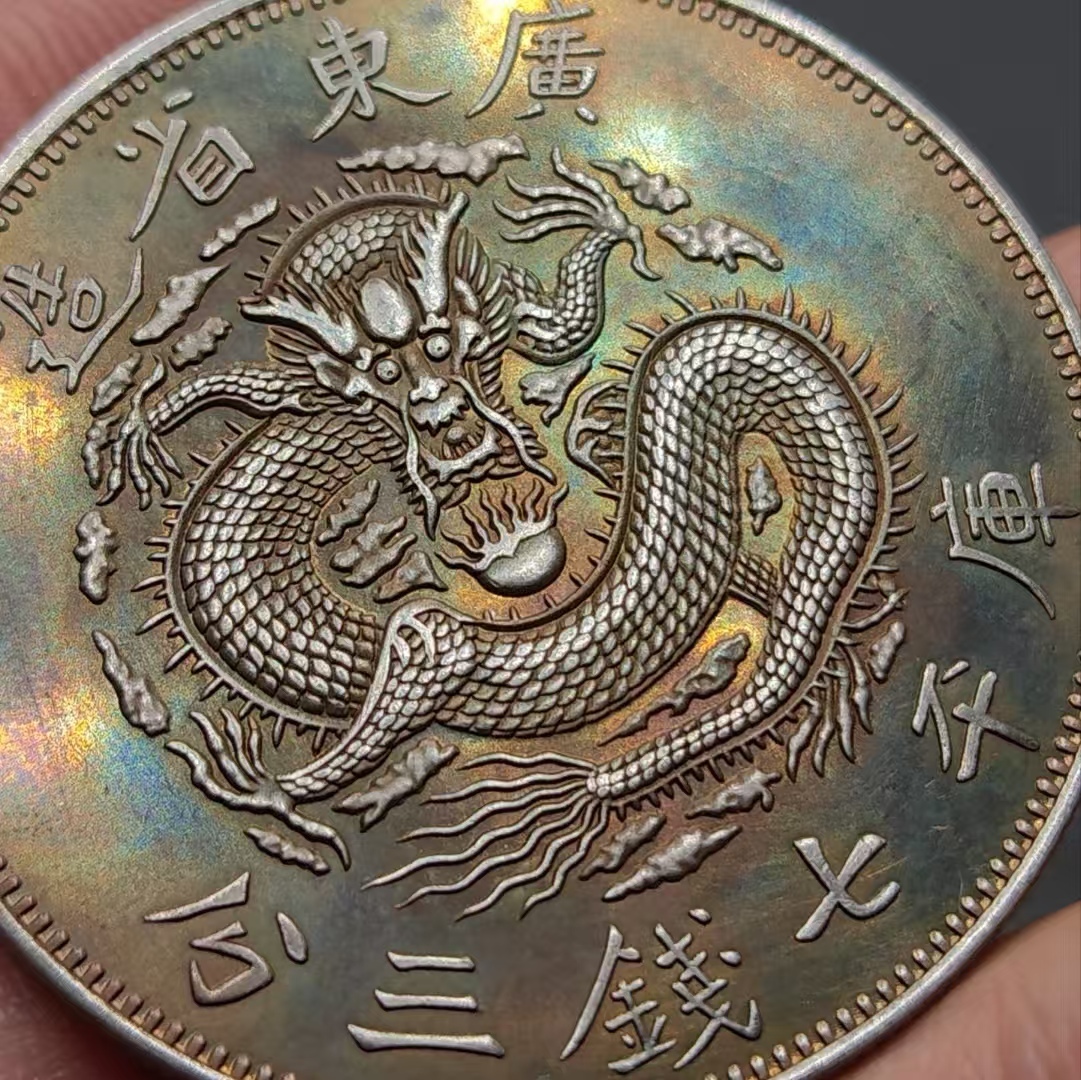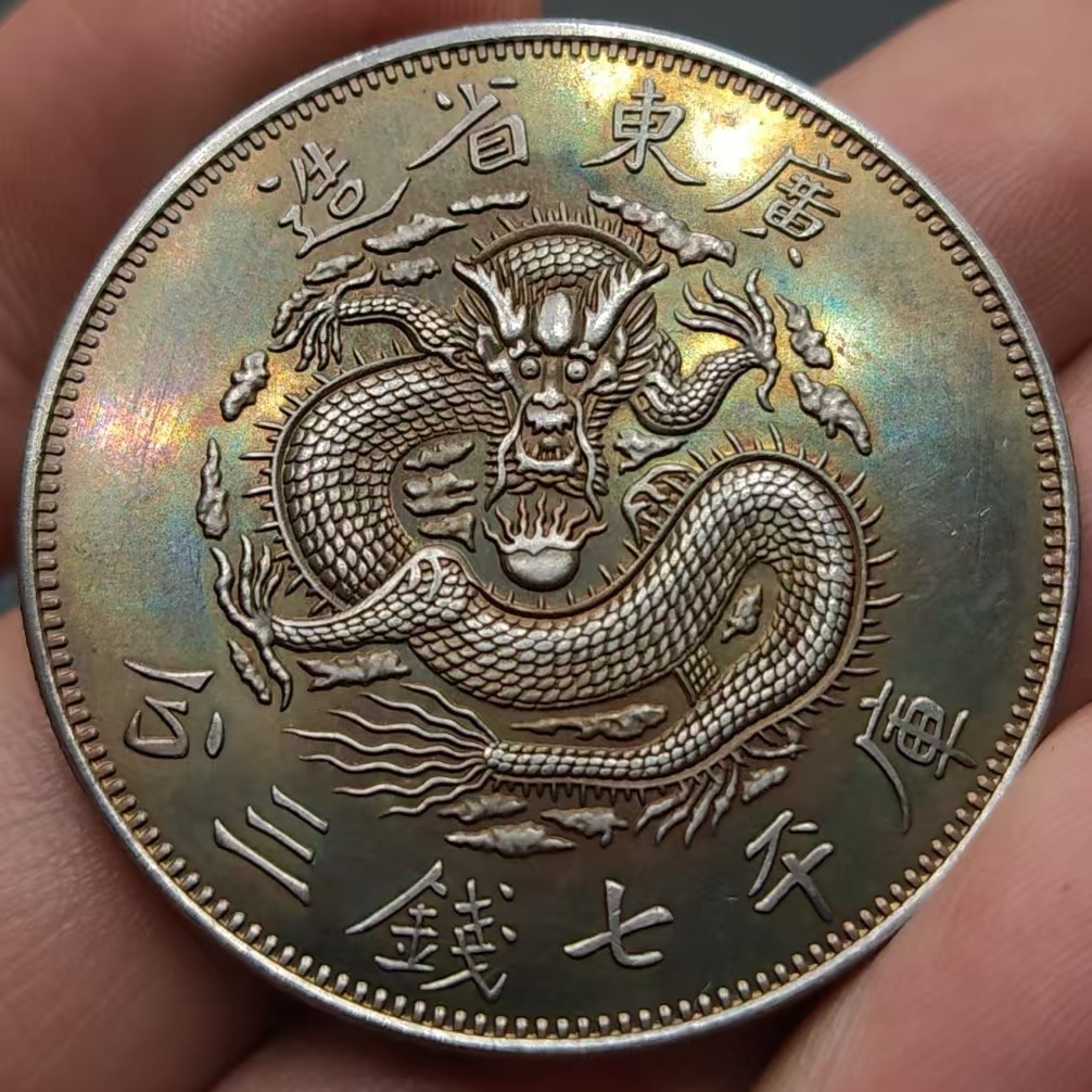 銀幣 銀貨 秘蔵 古錢 清代 龍幣【 七彩 光緒元寶 廣東省造 庫平七錢三分 】 中国古錢 銀貨 銀元 大洋 収蔵品 時代物 希少珍品 骨董品8.20