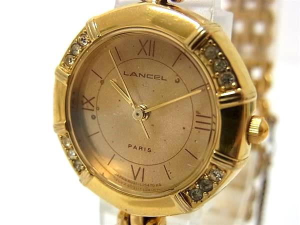 1円 ■稼働品■ LANCEL ランセル ラインストーン クォーツ 腕時計 ウォッチ レディース ゴールド系 FS3584